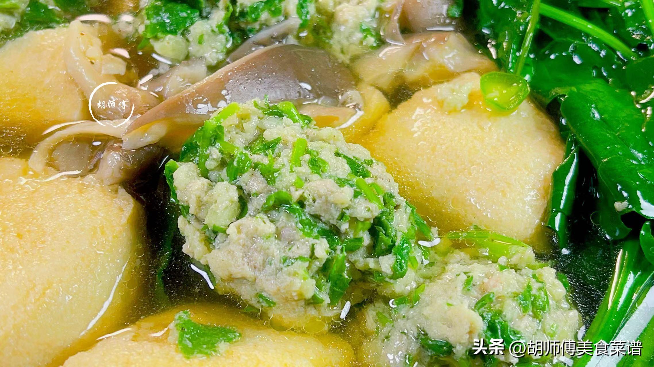 【食材準備】:艾草200克、前夾肉300克、雞蛋1個、薑末、麪粉、食鹽、雞精、平菇、菠菜、豆泡、胡椒粉、食用油適量。