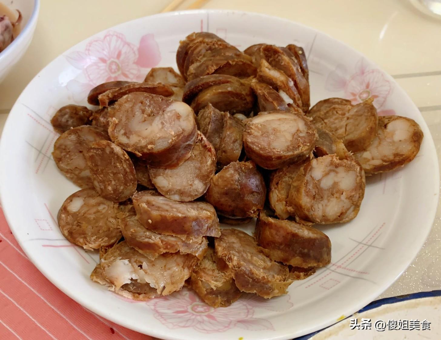 旁邊的那盤自制風乾腸,更是讓我瞬間回到了童年。每年冬天,媽媽都會買上好的豬肉,自己灌製風乾腸。她會按照祖傳的比例,加入鹽、糖、花椒、八角等調料,然後把腸衣洗得乾乾淨淨,把肉餡一點點灌進去,掛在通風的地方風乾。過年的時候,把風乾腸切片蒸熟,肥瘦相間,鹹香入味,是我們家年夜飯桌上必不可少的一道菜。老公和孩子也特別愛喫,每次回來都要打包帶走好幾根。