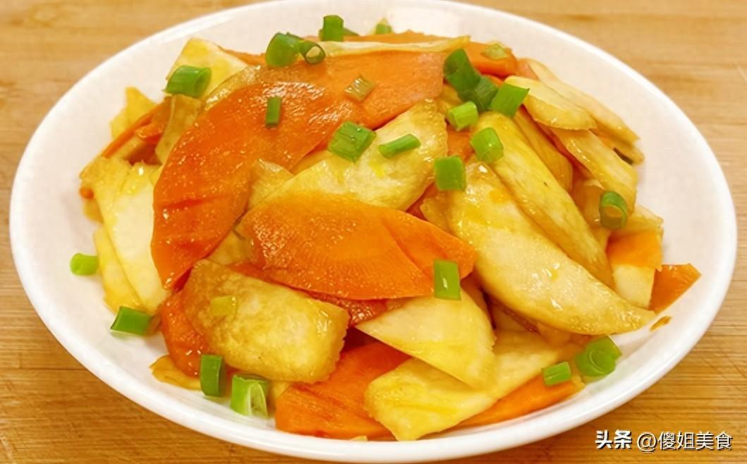 一盤色香味俱全的清炒茭白就完成了,白嫩的茭白點綴着橙紅的胡蘿蔔和翠綠的香蔥,賞心悅目。夾一筷入口,茭白脆嫩爽口,清甜中帶着醬香,胡蘿蔔的甜味也恰到好處地融入其中,每一口都是春天的味道。