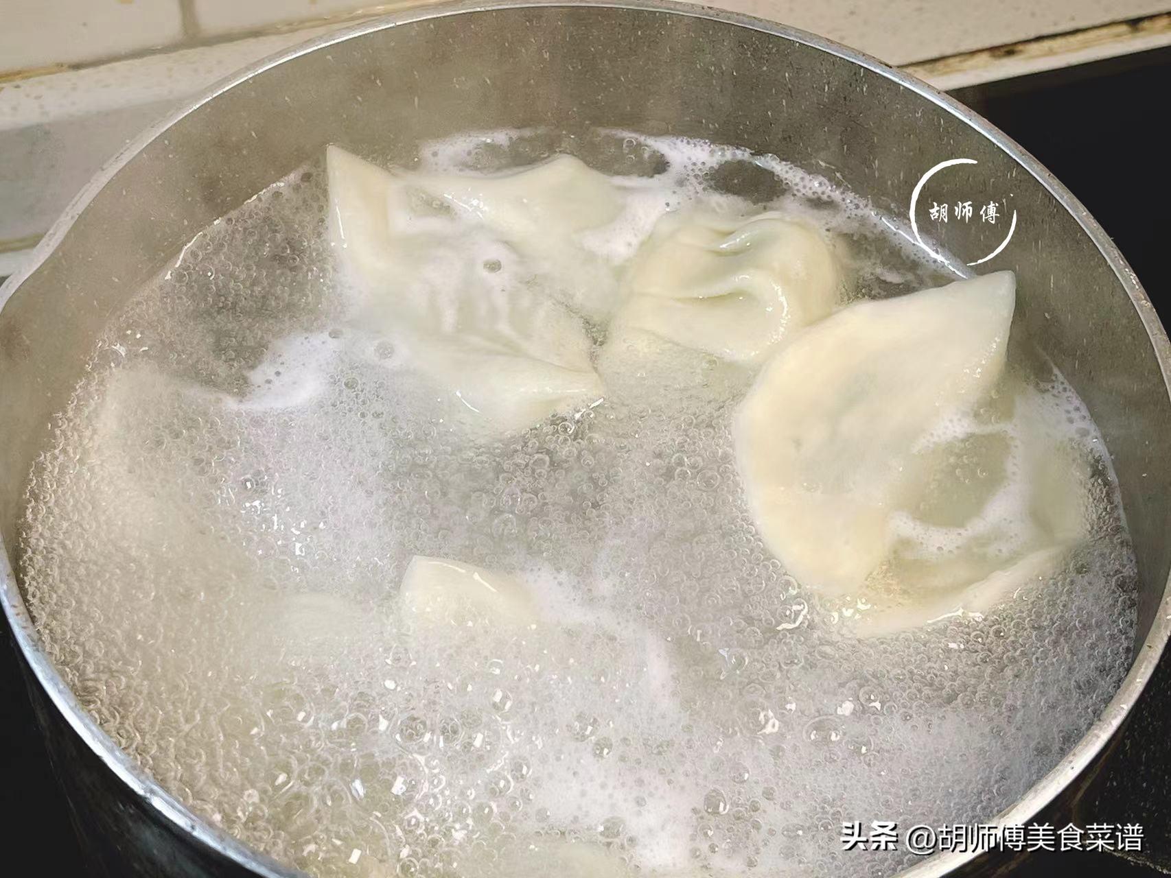 第六步:鍋中放個適量水,大火把水煮沸後,將苜蓿餃子放入鍋中,大火將餃子煮的浮出水面後,蘸着陳醋即可食用,新鮮餃子不需要點水,煮凍餃子才需要點水。