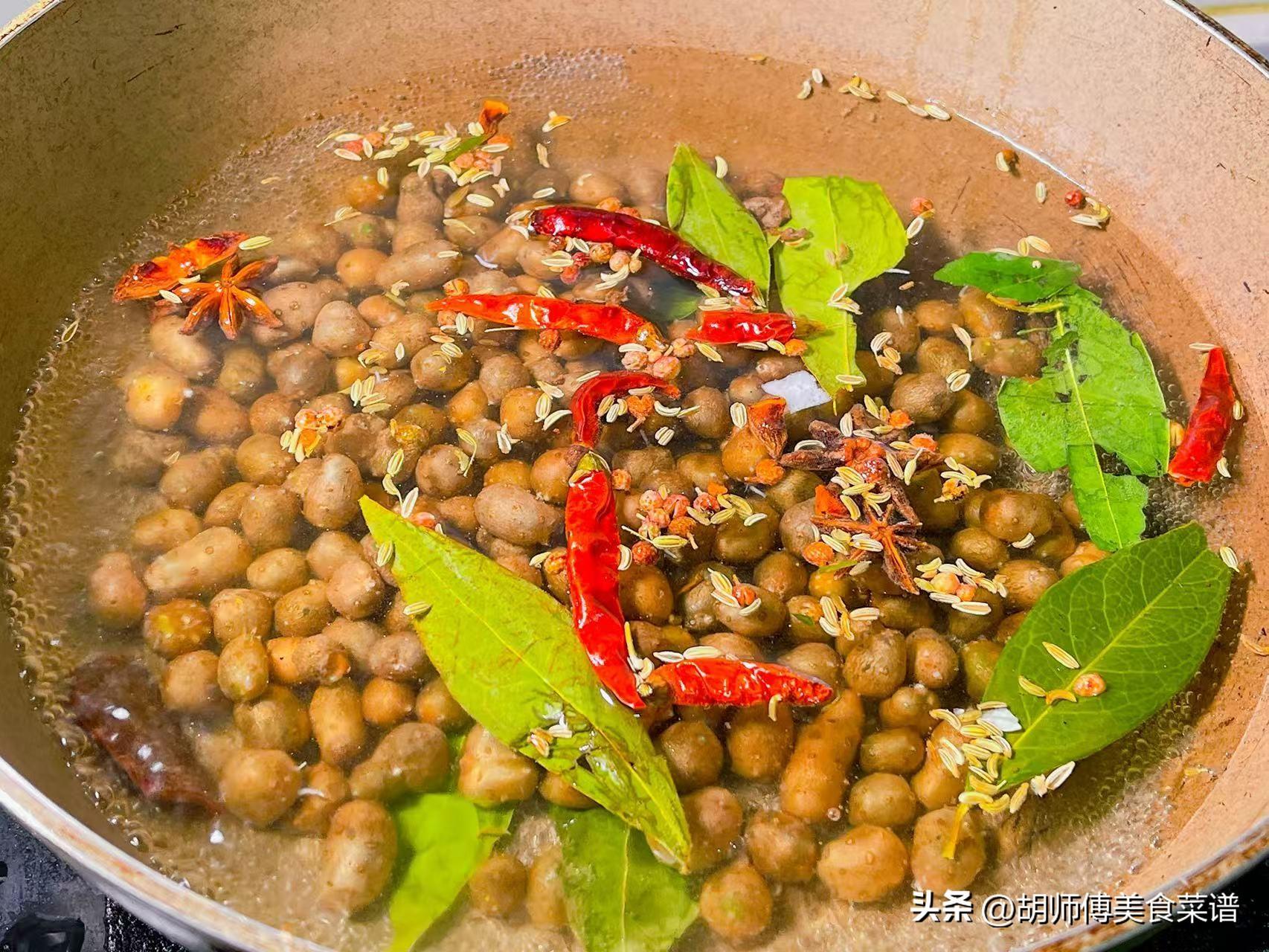 【食材準備】:山藥豆500克、八角3克、花椒3克、幹辣椒5克、香葉5克、桂皮3克、茴香5克、食鹽適量。