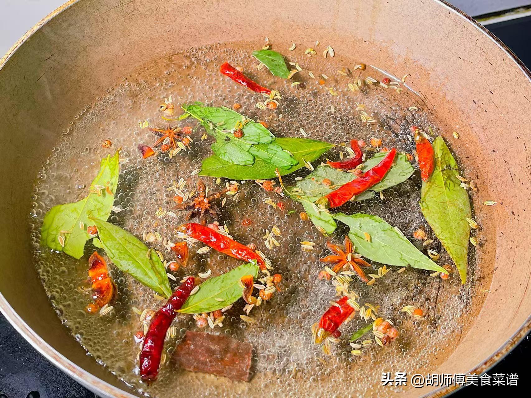 第三步:鍋中放入適量水,然後把香料和食鹽全部都放入鍋中,接着大火,將水煮沸後改小火,繼續煮10分鐘,這樣可以將香料中的香味全部煮出來。
