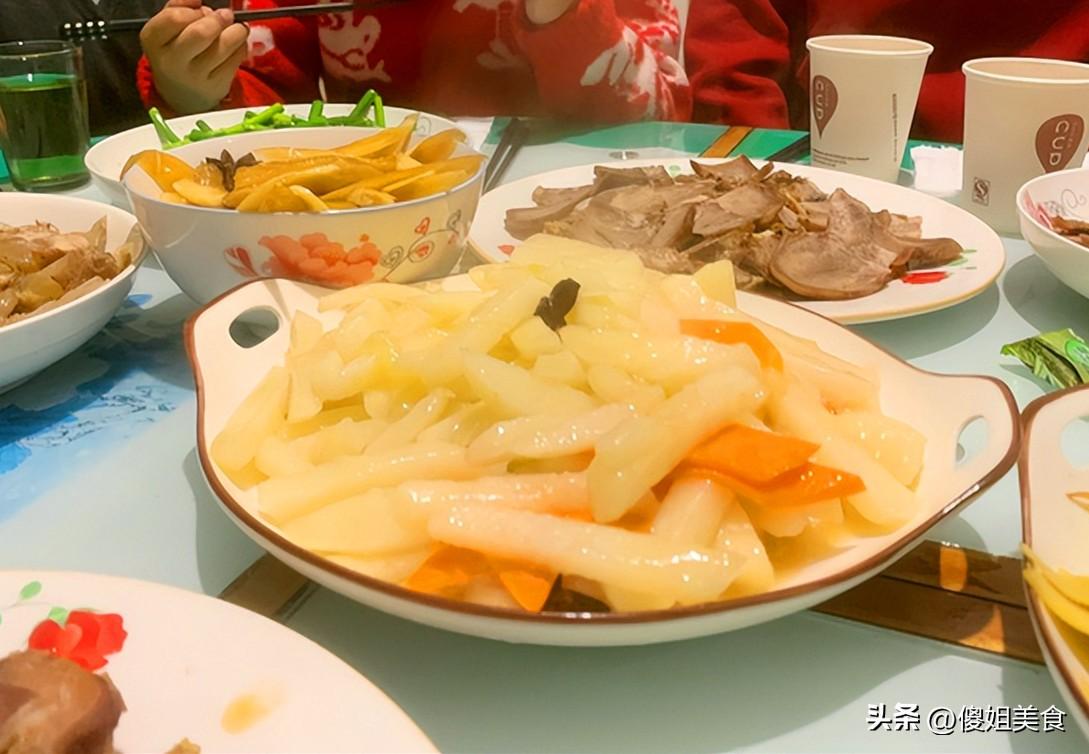 弟媳婦心細,知道俺脾胃不大好,特意給俺單做了這道清炒山藥。在俺們這兒,過年給老人、脾胃弱的人做這菜,是再貼心不過的了。