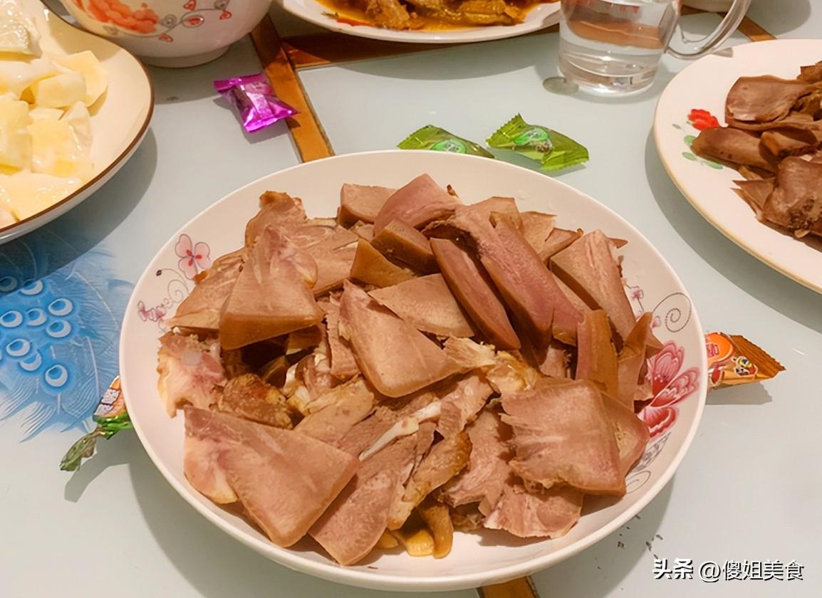 牛舌根:這可是弟媳婦的拿手絕活,俺弟和俺爹,就着這菜能多喝二兩龍口白酒。做法也不復雜,聽俺給恁嘮明白:新鮮牛舌根冷水下鍋,扔上幾片姜、倒點料酒,焯出血沫就撈出來。重新添水,放八角、桂皮、香葉,再倒上生抽、老抽,扔兩塊冰糖,小火慢滷一個鐘頭。等涼透了,切成薄薄的片,淋上點自家炸的辣椒油,撒把香菜段,滴兩滴醋,拌一拌就成了。這牛舌根嚼着緊實,越嚼越香,一點腥味都沒有。俺弟一邊嚼一邊說:“媳婦,這手藝比集上滷味攤的還地道!”爺倆邊喝邊聊,那叫一個愜意。