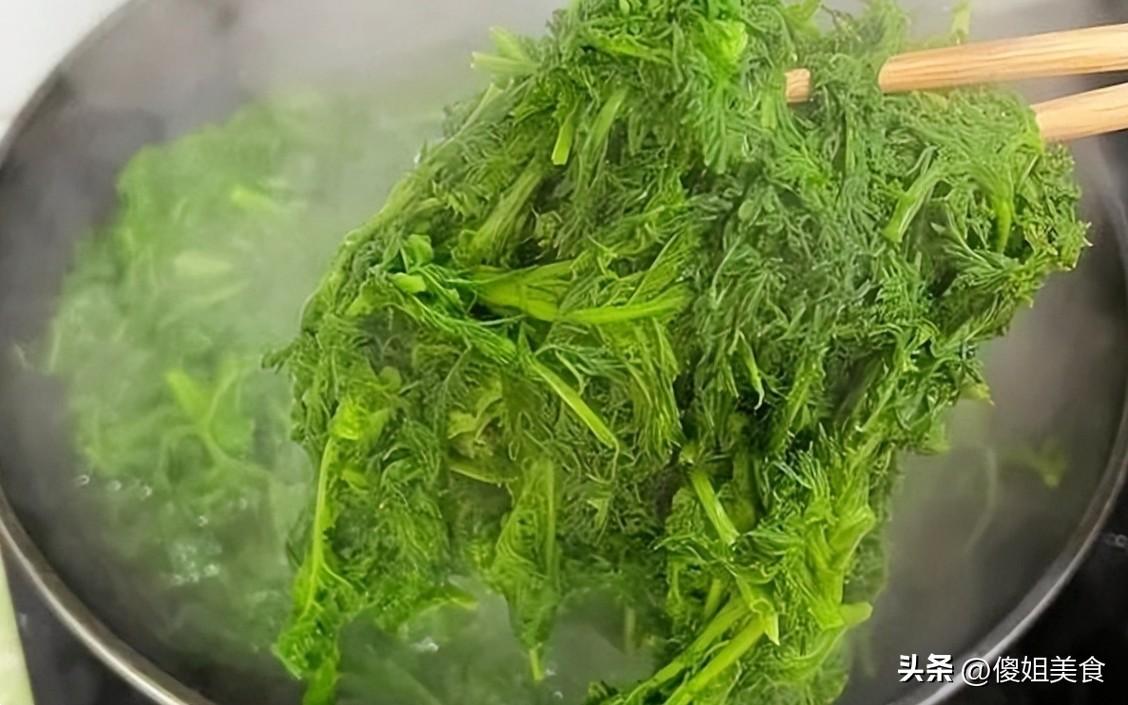 我媽說:“這菜有點苦味,得泡一下。”然後她就接了一大盆涼水,把焯好的麥蒿泡進去,說要泡一天一晚上,中間還得換幾次水。我問她爲啥,她說這樣苦味就去幹淨了,喫起來只剩清香。好吧,那就等着唄。