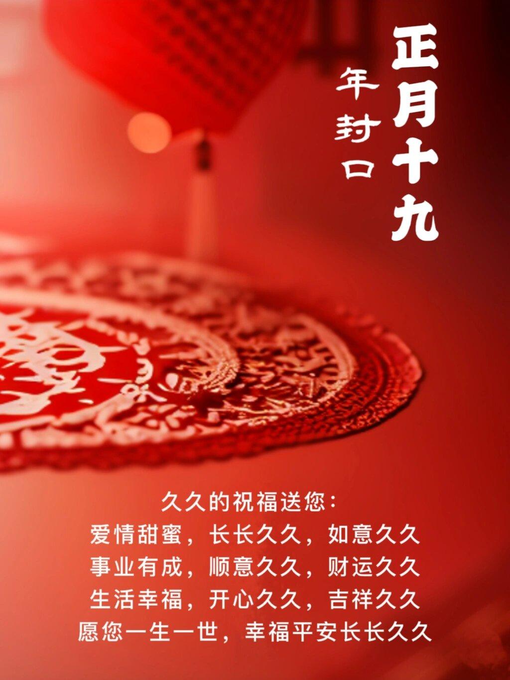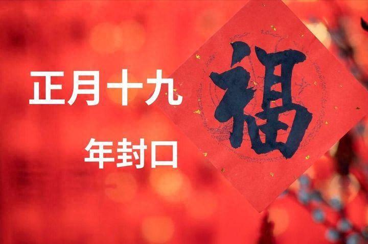 明天是正月十九,傳統民俗稱爲“年封口”(或“封年口”),寓意春節的慶祝活動至此收尾,也就全部結束了。應該準備迎接新的工作了,全面展開。將一年的福氣、財氣、好運“封”在家中,祈願新的一年圓滿順遂。