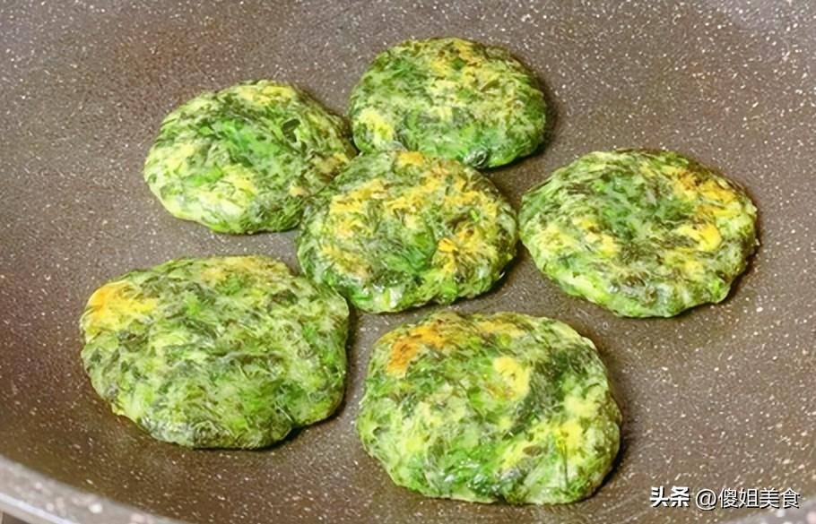 平底鍋裏倒油,不用太多,能鋪滿鍋底就行。油熱了之後,把做好的小餅一個個放進去。小火慢煎,看着小餅底部慢慢變成金黃色,上面還是好看的翠綠色,大概兩三分鐘,底部煎好了,翻個面繼續煎。這時候艾草的香味已經完全釋放出來了,混着油香,飄得滿屋子都是。兩面都煎到金黃,用鏟子按一下,感覺有彈性了,就說明熟了。出鍋裝盤,趁熱喫是最香的。