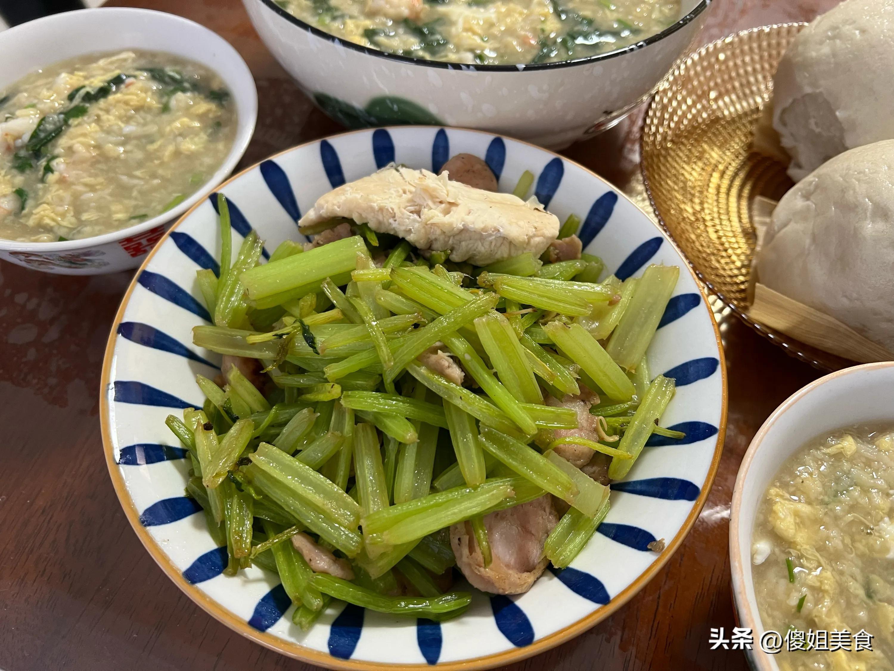 一盤綠油油、油亮亮的芹菜炒香腸,看着就開胃;再加上白白胖胖的大饅頭,管飽又實在。