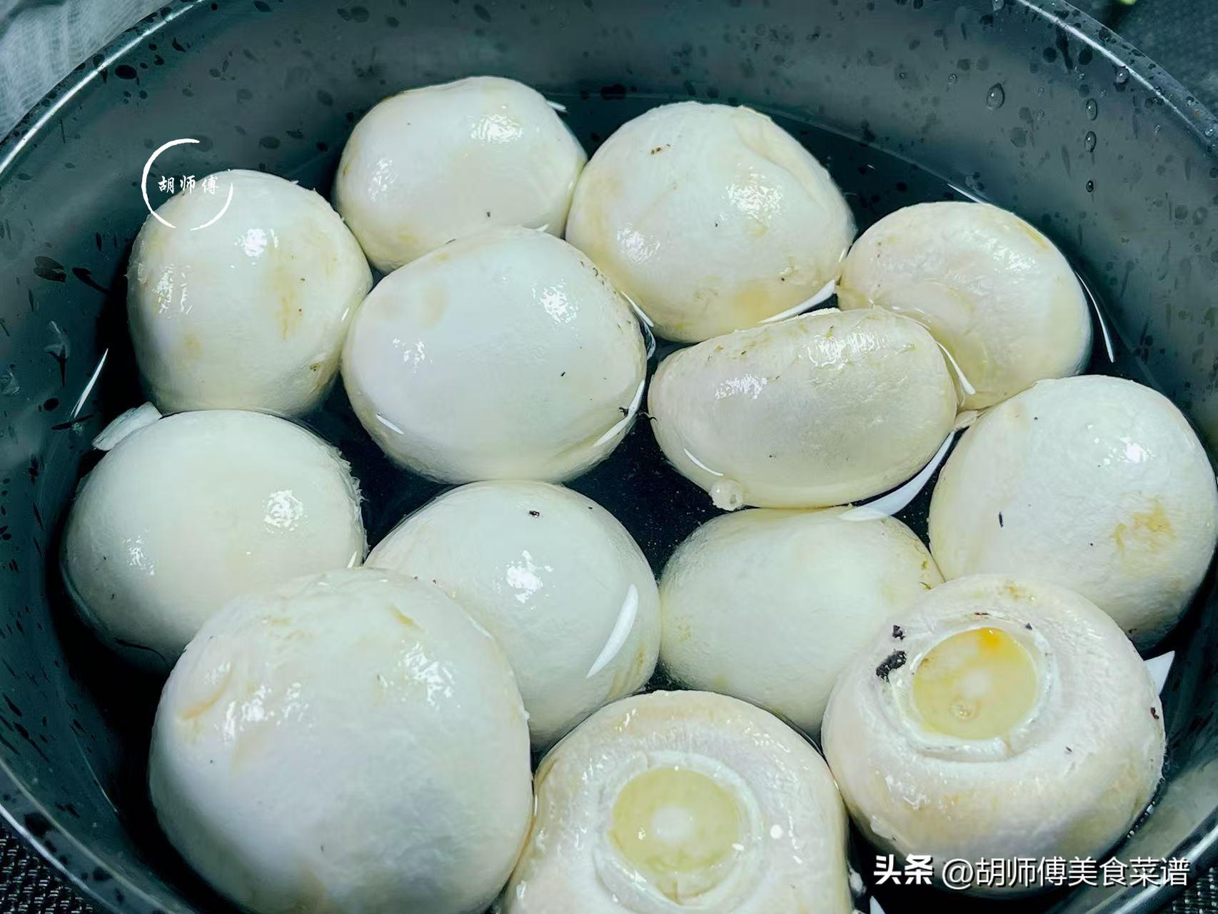 3、如果您買的白蘑菇比較老,等白蘑菇煎好後,需要多放一點水,將白蘑菇燜煮1分鐘,這樣纔可以使白蘑菇喫着更軟。