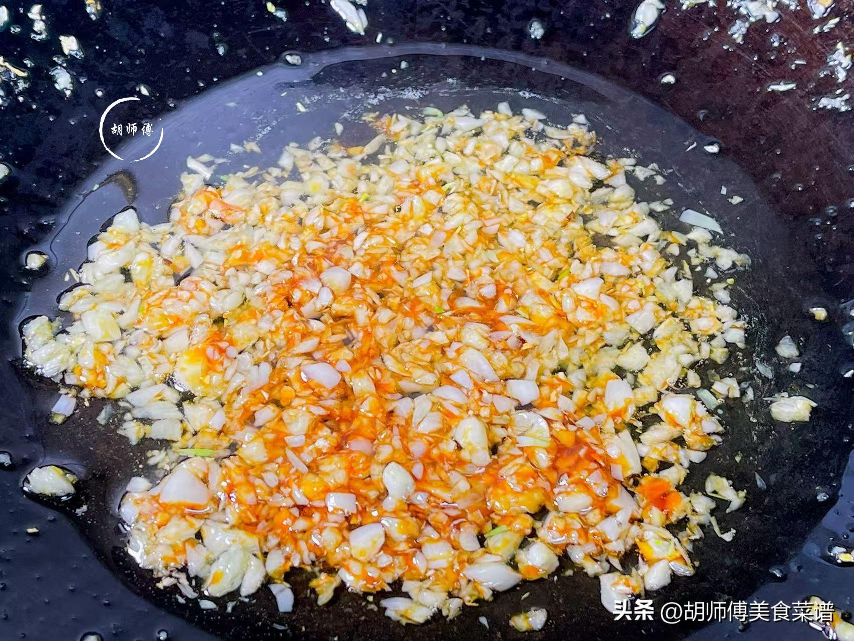 第四步:鍋中放入適量油,然後把瀝乾水的蒜末放入鍋中,大火將大蒜炸的表面微微發乾,就可以將蒜末撈出,接着再用蠔油放入蒜蓉中攪拌均勻即可起鍋備用。