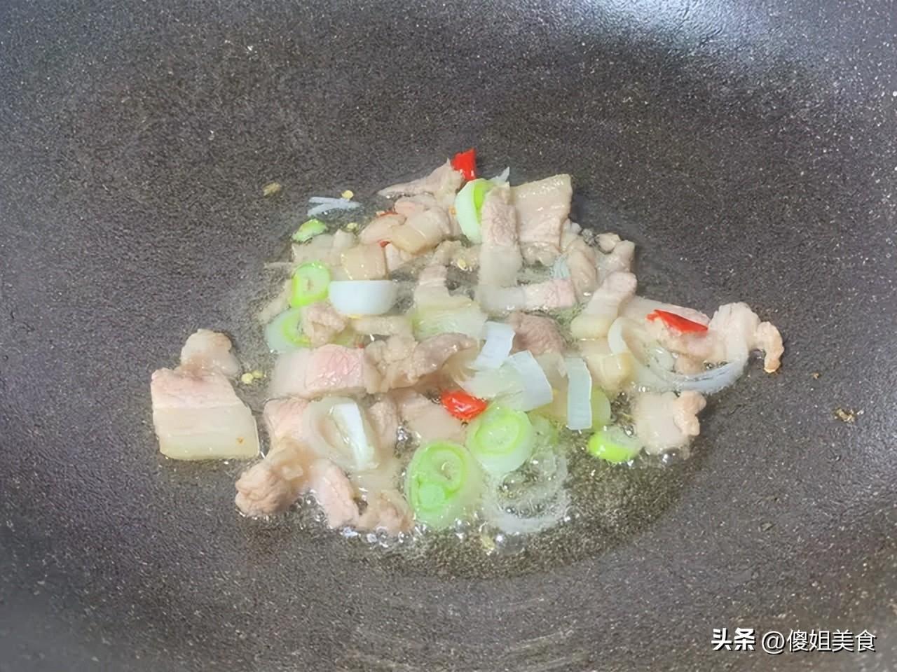 2. 五花肉要煸透:小火把五花肉的油脂煸出來,炒出來的菜才香,不膩人。要是煸得不夠,肉就會發柴,菜也會寡淡。