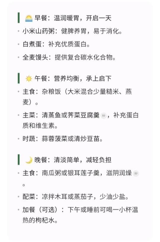 將原則落實到一日三餐,並不複雜。這裏有一份參考食譜,兼顧了營養與節氣養生。