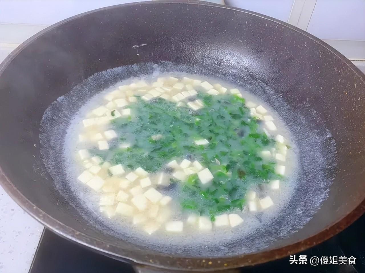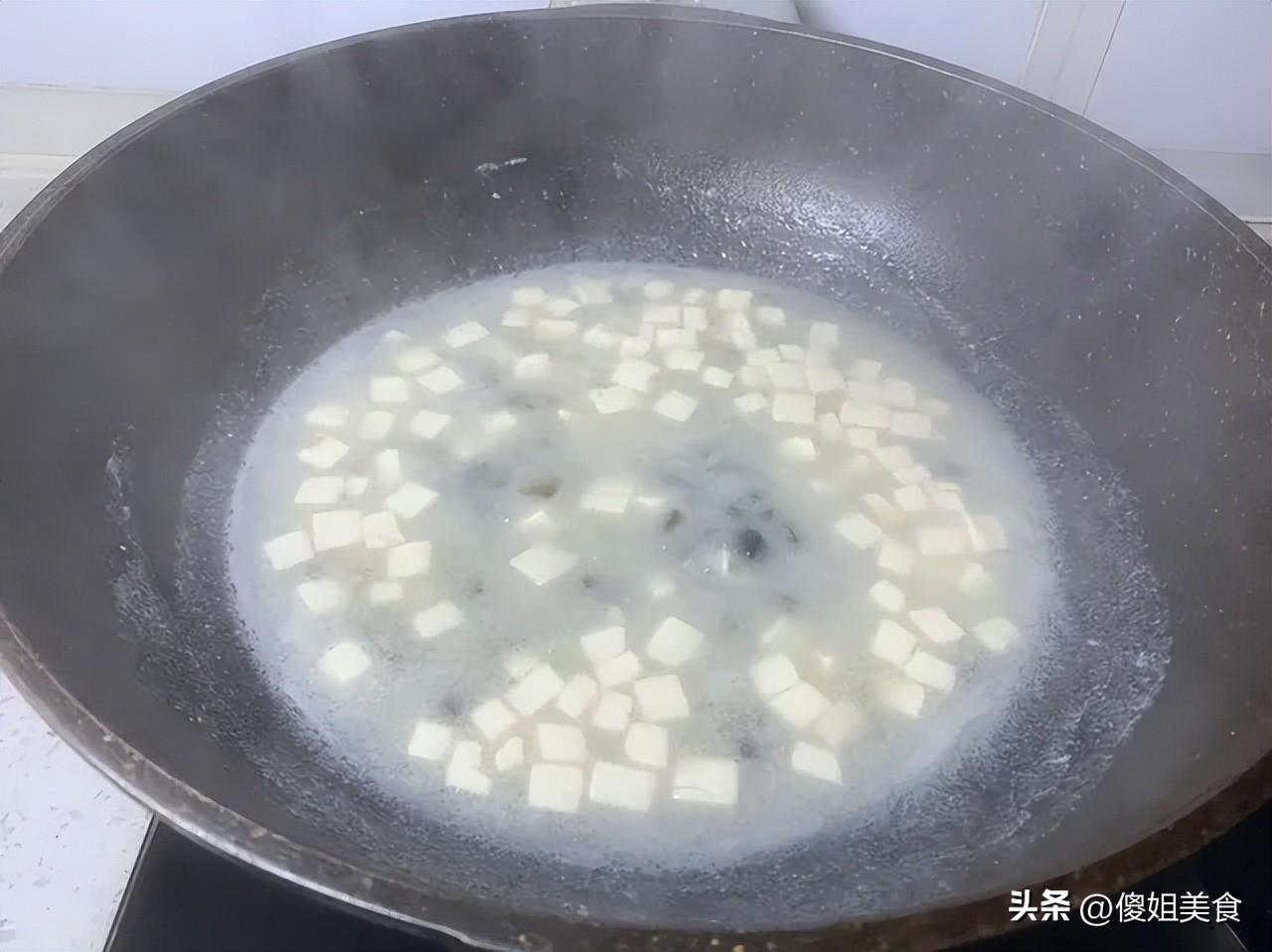 2. 豆腐處理:嫩豆腐極易破碎,下鍋時用勺子輕輕推入,煮制過程中儘量減少攪動。