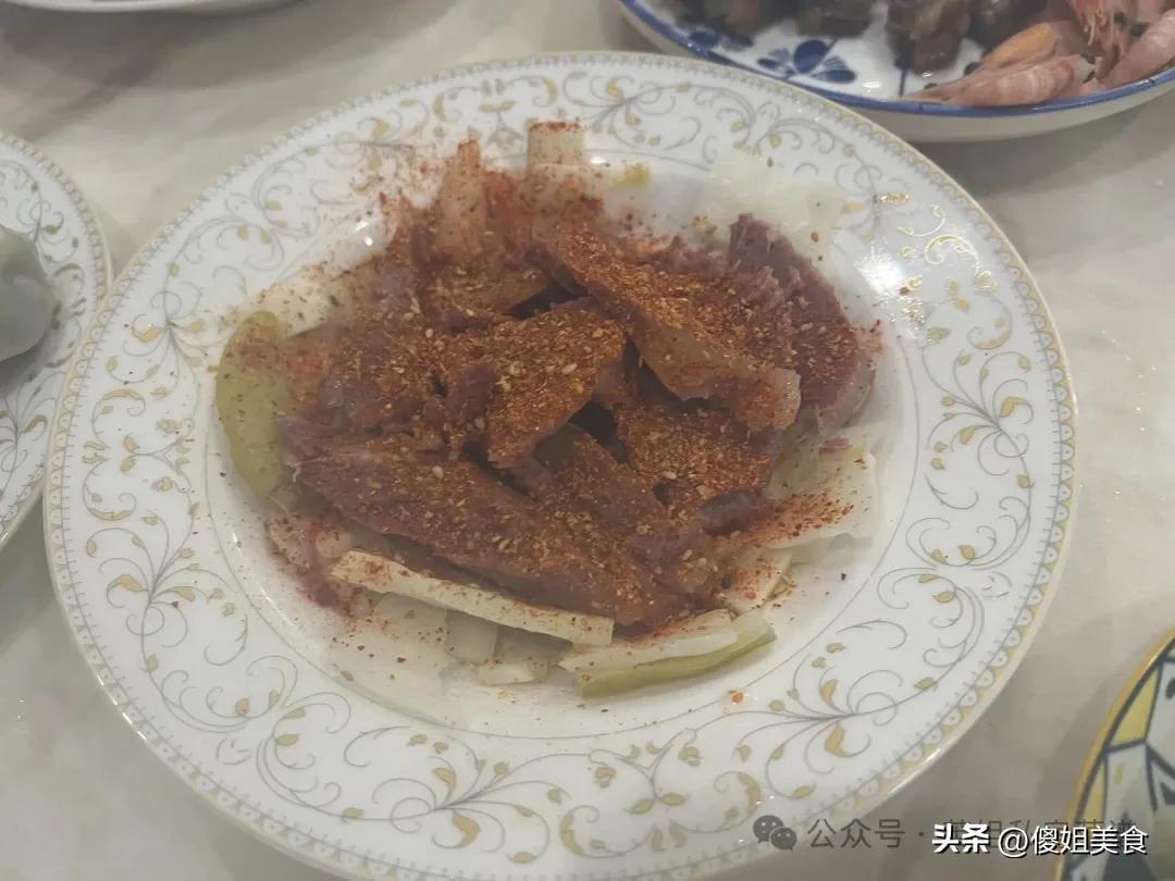 其實哪是什麼大餐啊,就是我們家普普通通的一頓晚飯。主食是韭菜豬肉餡餃子,配菜是中午剩的辣椒拌牛肉和豬皮凍,還有一盤北極蝦,都是家常到不能再家常的東西。