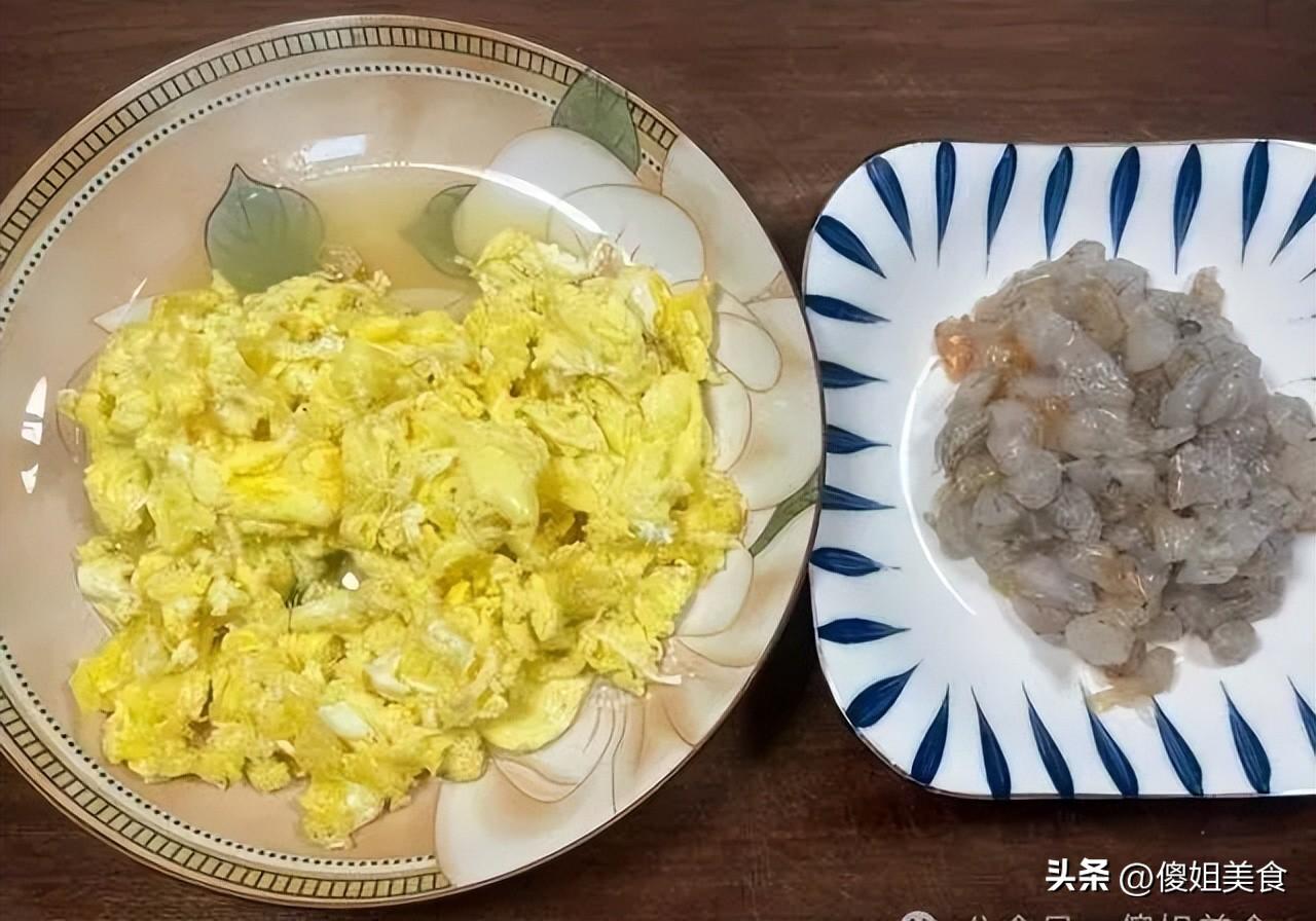 3. 處理蝦仁:蝦仁洗乾淨,用廚房紙吸乾水分,切成小段(別太碎,喫的時候能咬到整顆蝦仁才香),加少許鹽、白胡椒粉、薑末抓勻,醃5分鐘去腥味。
