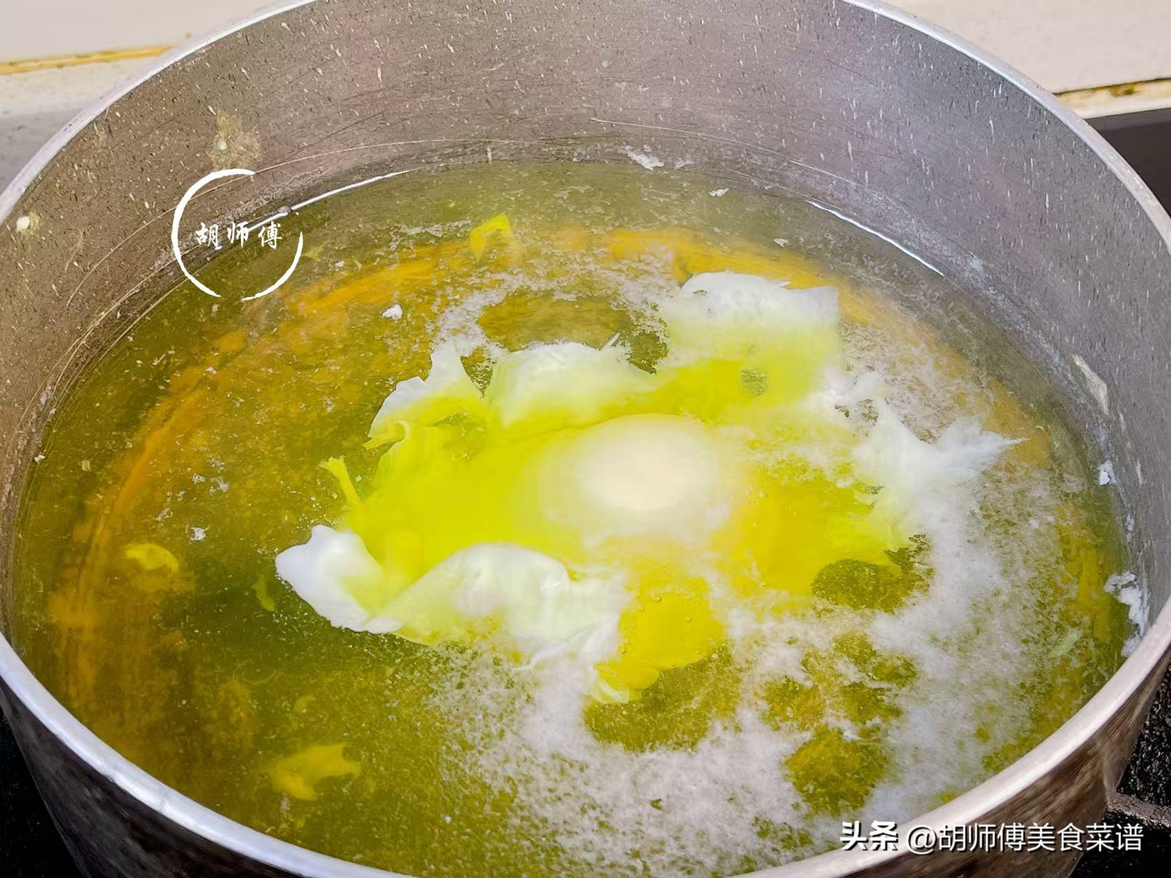 第二步:鍋中放入適量水,等水煮的有大量水泡泡時,就將土雞蛋打入水中,此時用小火,將雞蛋煮5分鐘左右,直到雞蛋完全凝固。