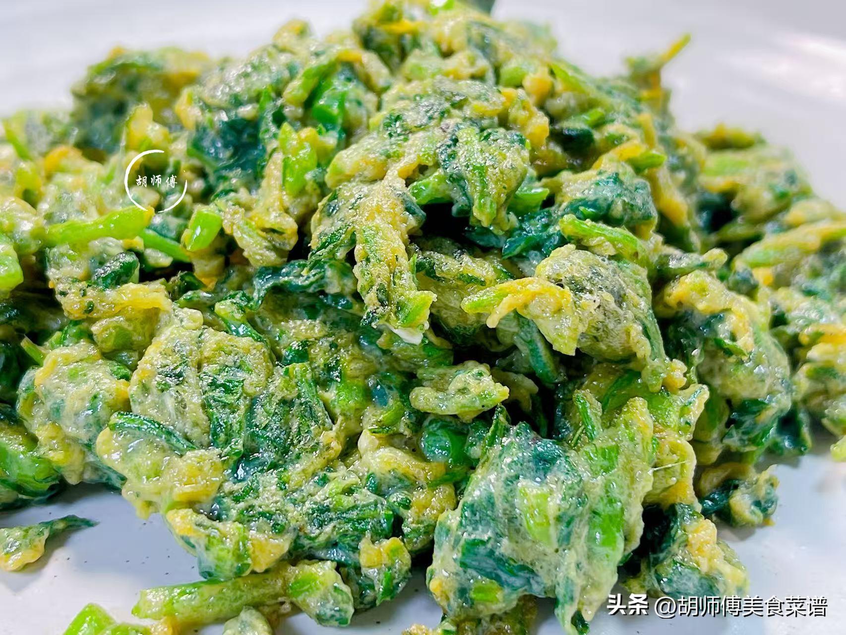 艾草和土雞蛋是絕配,特別是早春時節的艾草,本身就超級香,將它和雞蛋一起炒,炒好的雞蛋又香又鮮,喫上一口,整個味蕾都打開了,在春天多喫這道菜,還可以減少生病的概率呢!