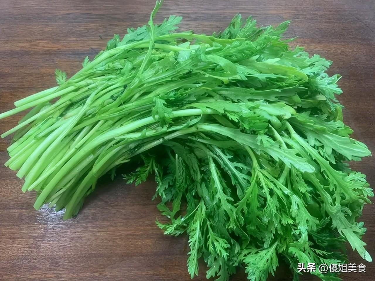 夾一筷子放進嘴裏,茼蒿的鮮味兒在嘴裏散開,帶着一點點面香,再裹着蒜香和油香,清爽不油膩,一點都不齁嗓子。春天喫這個,解膩又清火,剛喫完大魚大肉,來一盤這個,胃裏瞬間舒服了。