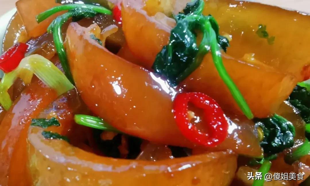 如果覺得豬皮不過癮,也可以把食材換成豬蹄,做法幾乎一樣,只是燉煮時間要延長到1.5-2小時,讓豬蹄徹底燉爛。下次去市場買肉,不妨也跟攤主多要一塊豬皮,或者花幾塊錢買一斤,跟着這個做法試試,保證你喫一口就停不下來,再也不會覺得豬皮是“邊角料”啦。