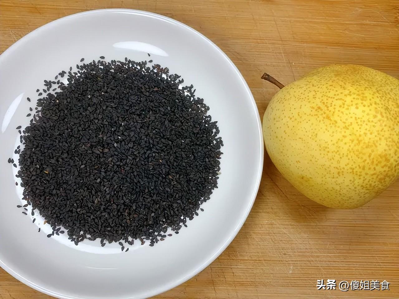 食材:麪粉300克、雪梨1個(中等大小)、黑芝麻30克、酵母3克、白糖少許、食用油適量
