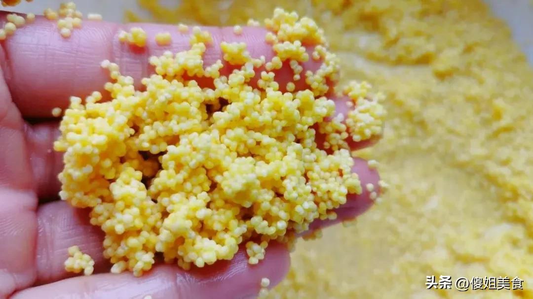 做法:1. 大碗裏放小米麪、麪粉、白糖、酵母,慢慢往裏面倒溫水,一邊倒一邊用筷子攪。攪成比較稠的麪糊,用筷子挑起來能掛住,不會馬上滴落就行。
