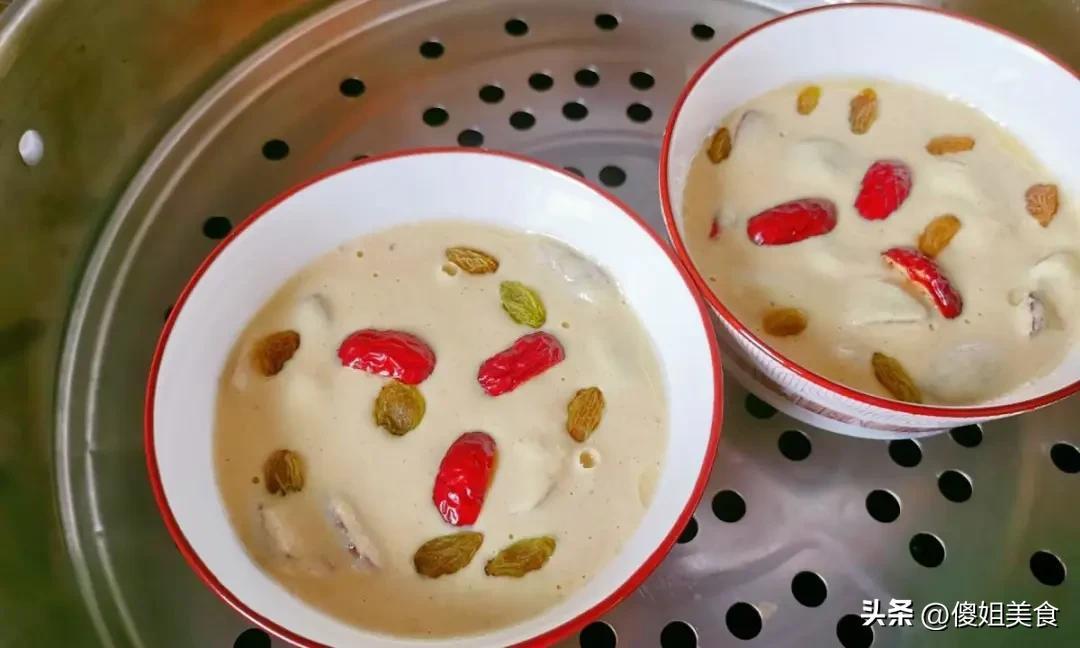5. 蒸鍋加水燒開,把容器放進去,大火蒸30分鐘,關火後稍微晾涼一下,脫模切成塊就行。