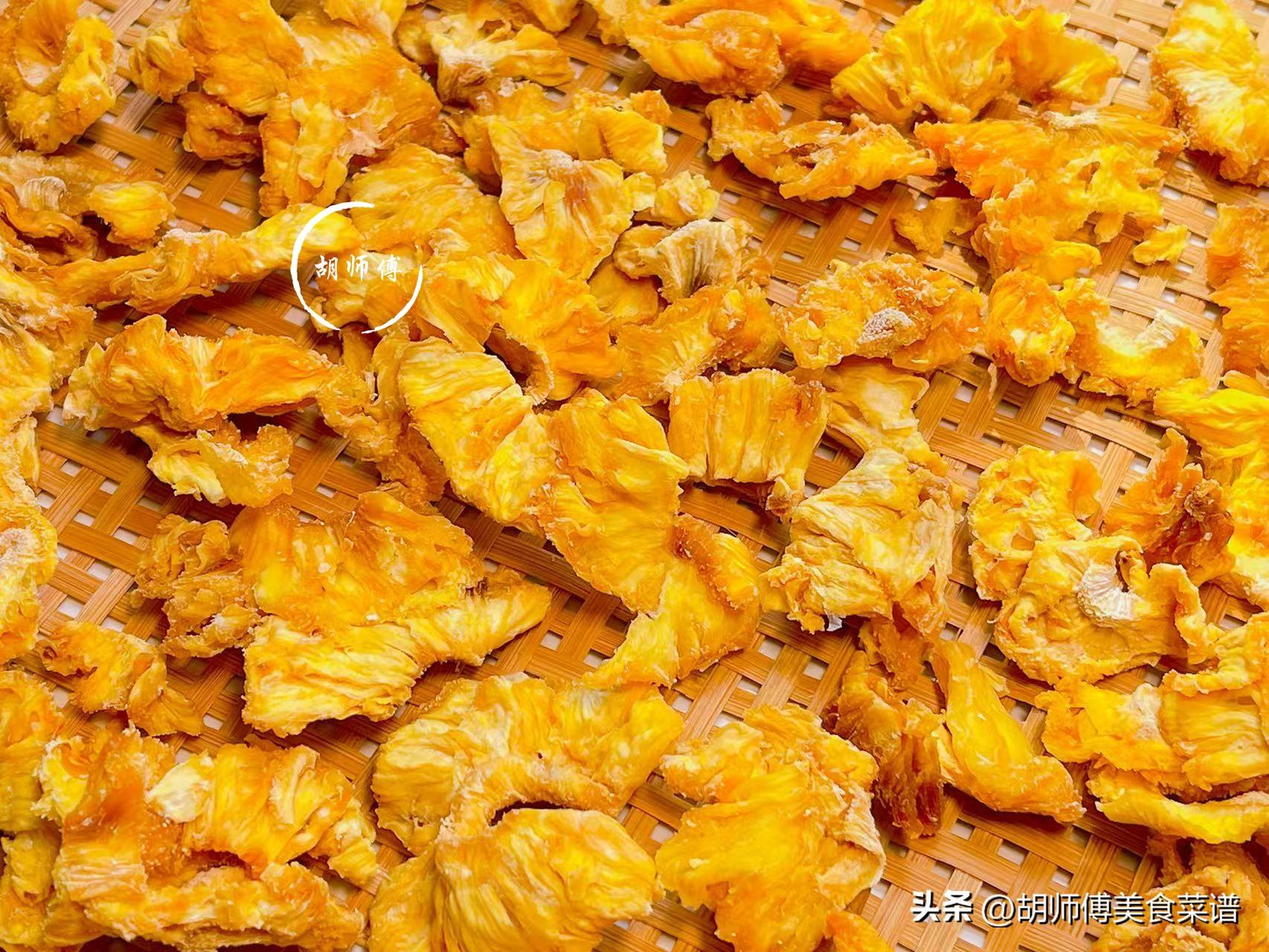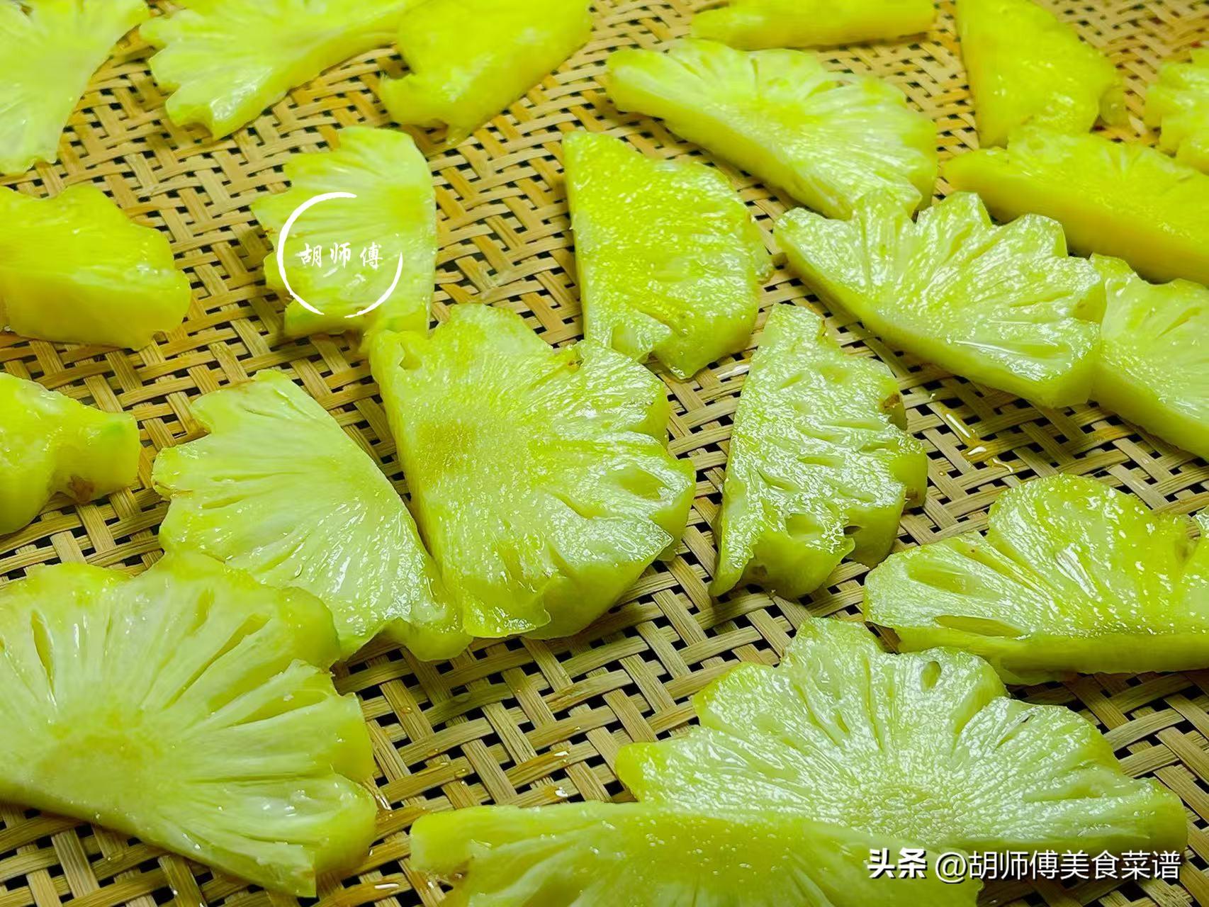 2、菠蘿乾必須用白砂糖醃後再曬,因爲經過暴曬的菠蘿乾,會變得更軟,同時還會使菠蘿喫着更甜。