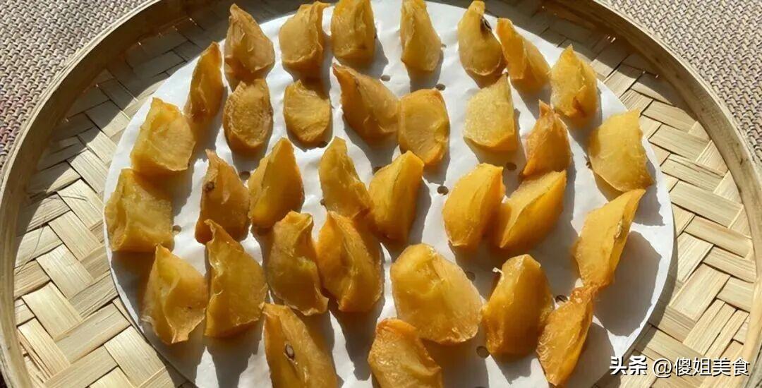 最後一次晾曬,時間就得自己把握了。朋友說,這個全看自己喜歡喫啥口感。喜歡喫軟一點、潤一點的,曬個一兩個小時就行了;要是喜歡喫那種有嚼勁、像牛皮糖一樣的,就多曬一會兒,把水分再收幹一些。