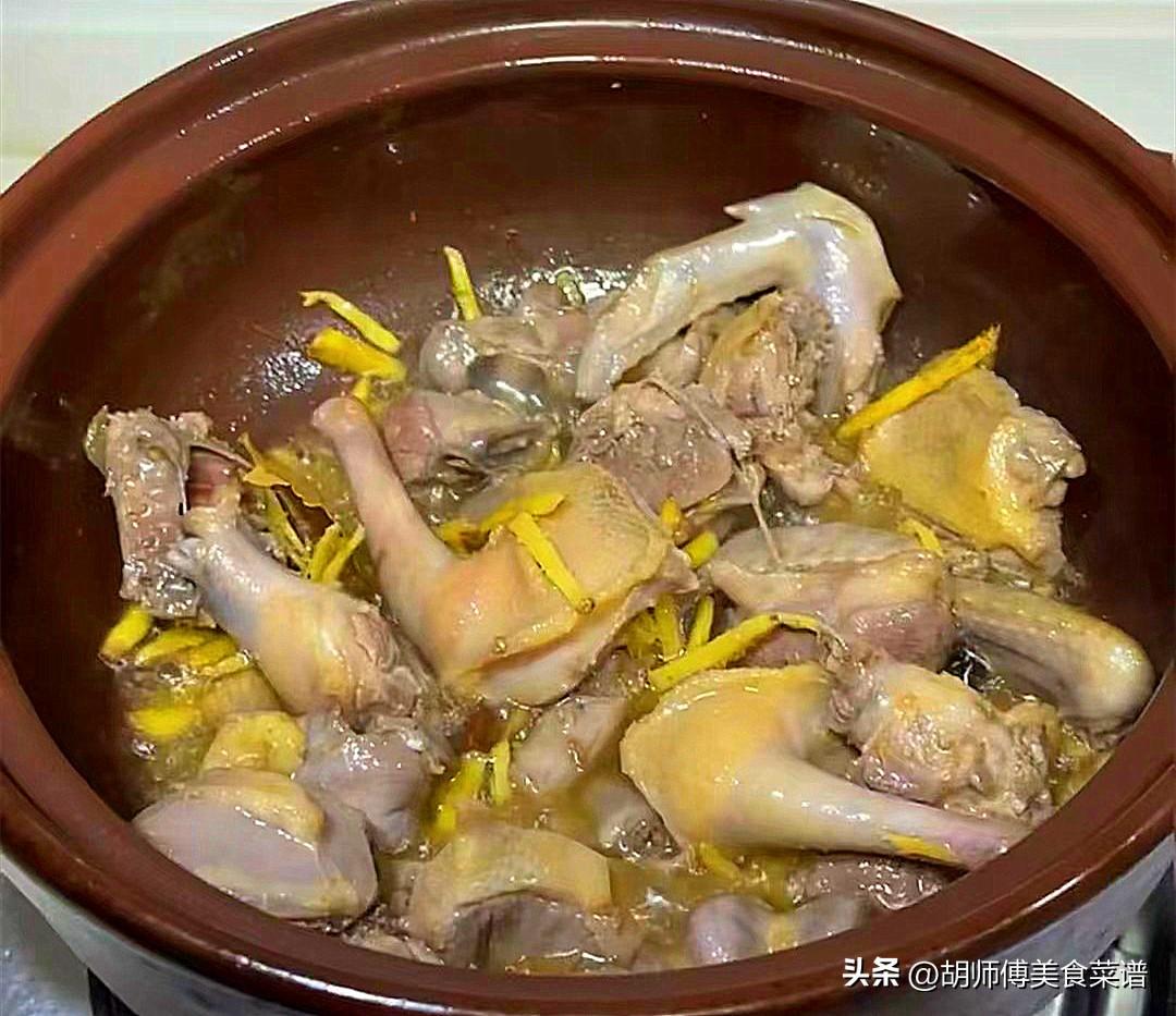 第二步:鍋中放入適量油,然後把紅蔥頭、老薑擺到鍋底,接着將鴿子肉擺在砂鍋中,最後開大火,將鴿子15分鐘。