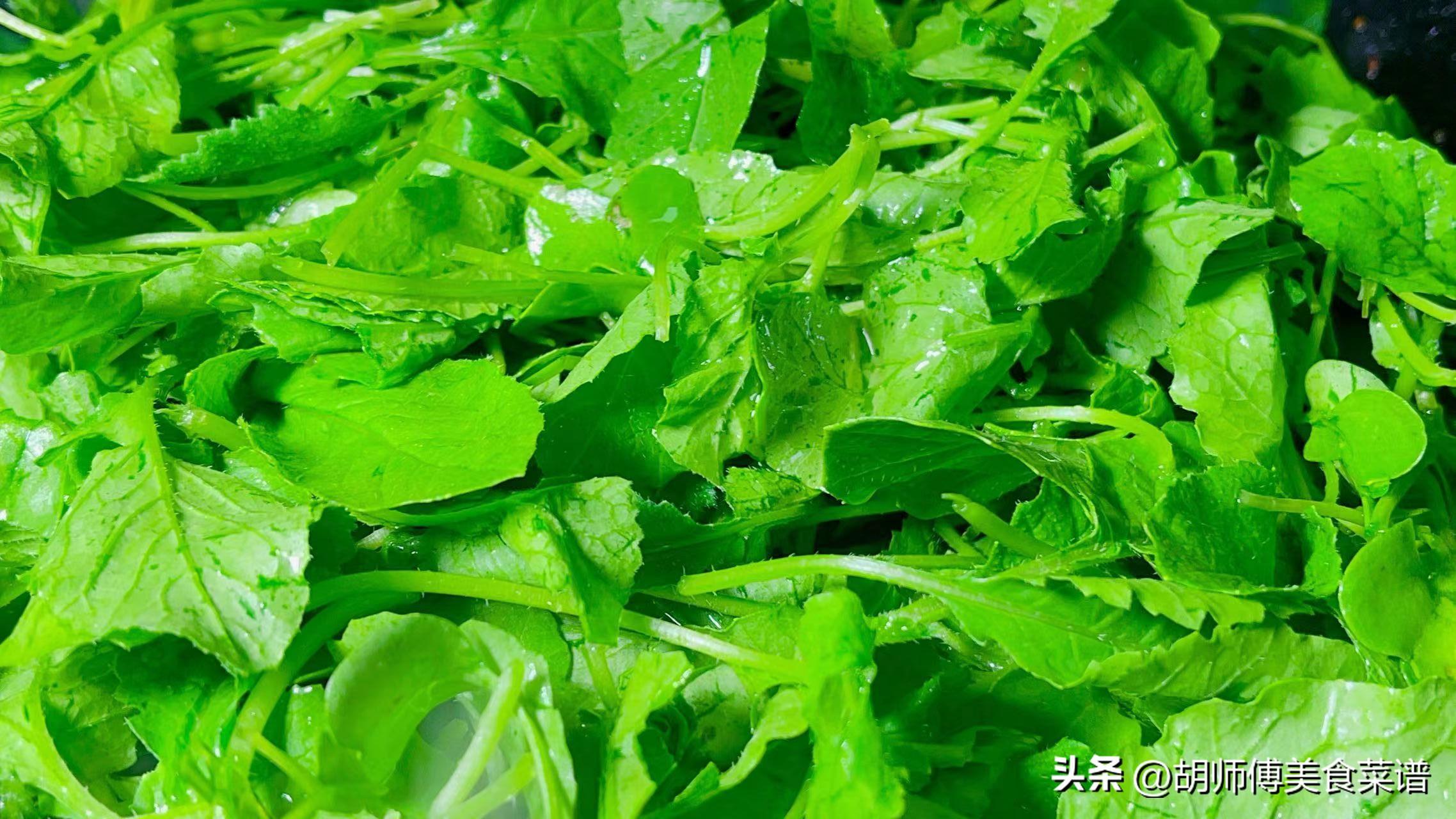 第一步:首先將蘿蔔發黃的葉子和老根擇的扔掉,然後將蘿蔔苗放入淡鹽水中浸泡10分鐘,時間到後,將蘿蔔苗撈出,再用自來水將蘿蔔苗沖洗乾淨,瀝乾蘿蔔苗中的水即可備用。