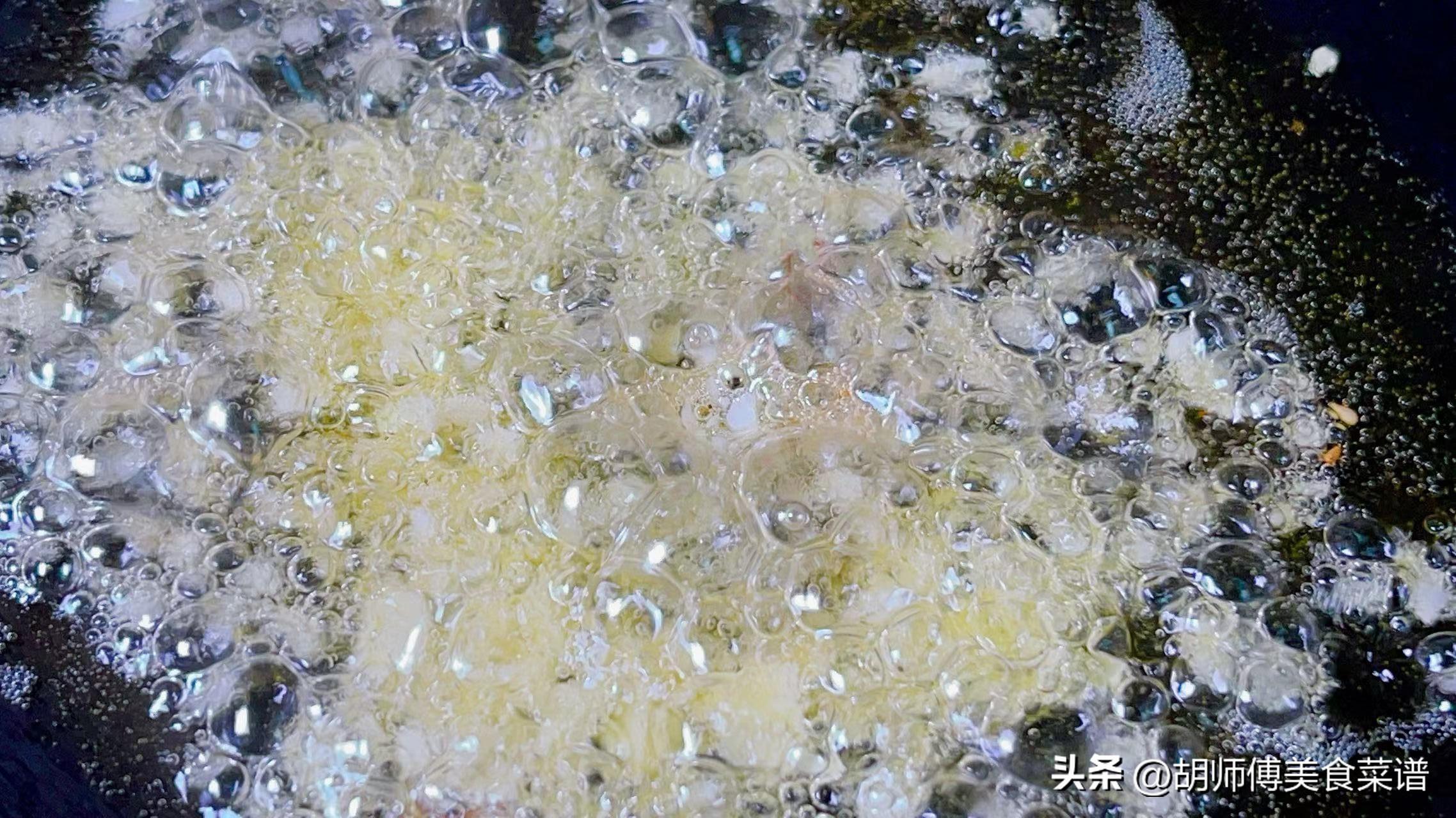 第三步:把鍋燒熱後,放入一勺油到鍋中,等油溫燒到5成熱後,將蒜末放入鍋中,大火將蒜末爆香10秒,徹底激發出大蒜籽的香味。