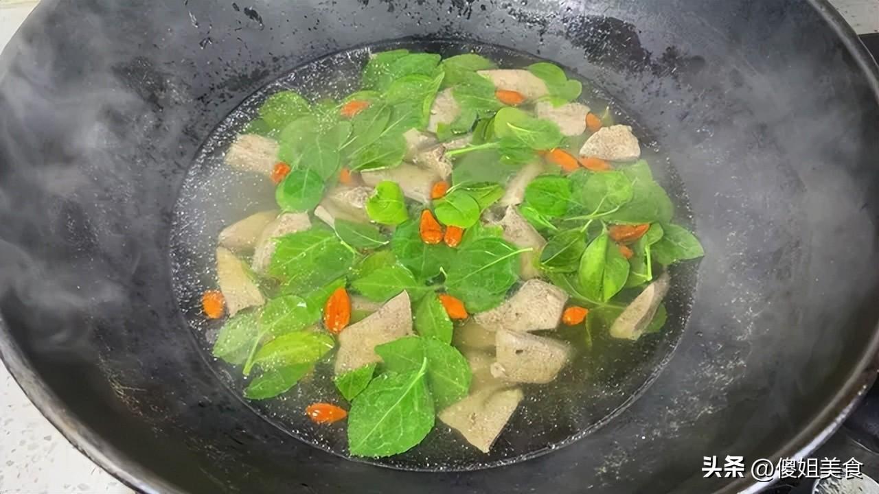 第四步:盛碗開喝關火後直接盛碗,不用放其他調料,原汁原味最香。嫩綠的扶芳藤浮在湯麪,搭配橘紅的枸杞和粉嫩的豬肝,看着就有食慾。喝一口,湯頭清潤帶着野菜的清香,豬肝軟嫩不柴,扶芳藤嚼起來帶着點脆嫩的口感,連喝兩碗都覺得不夠。