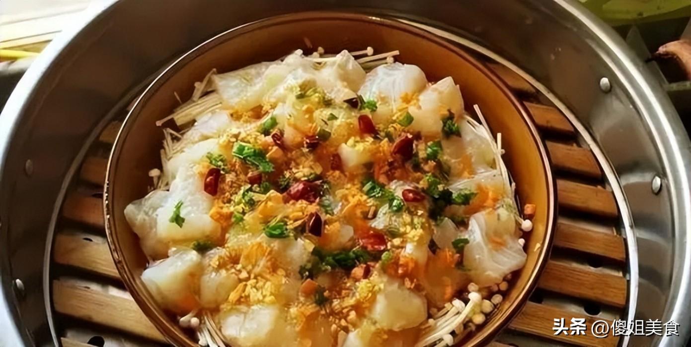 這道清蒸巴沙魚端上桌,熱氣騰騰的,魚肉嫩得輕輕一夾就碎,金針菇吸滿了鮮汁,咬一口滿嘴都是香味。我平時喫這道菜,都是先夾一塊魚肉,再扒拉一大口金針菇,最後舀一勺盤底的湯汁拌米飯,那滋味,真的能把一天的疲憊都衝沒!