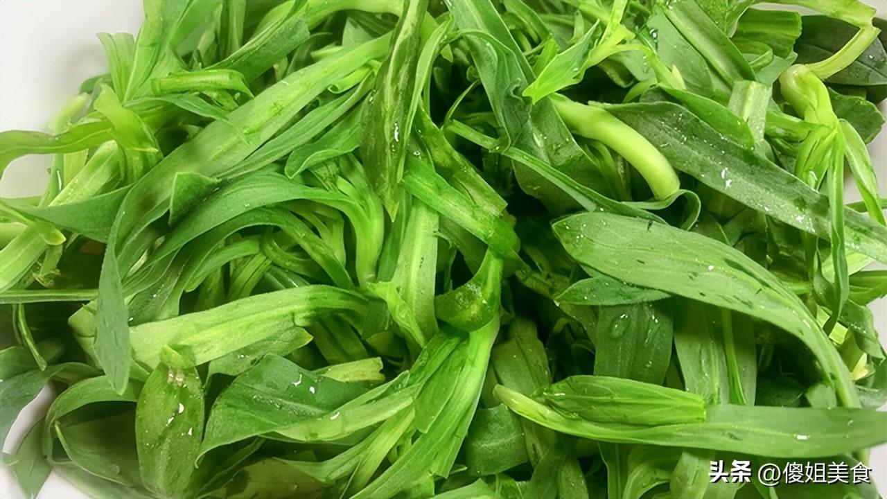 蹲下來仔細看,葉子窄窄長長的,確實像一根根綠色的麪條。湊近了聞,有一股子青草特有的清香味兒。我二話不說買了一斤,才三塊錢。