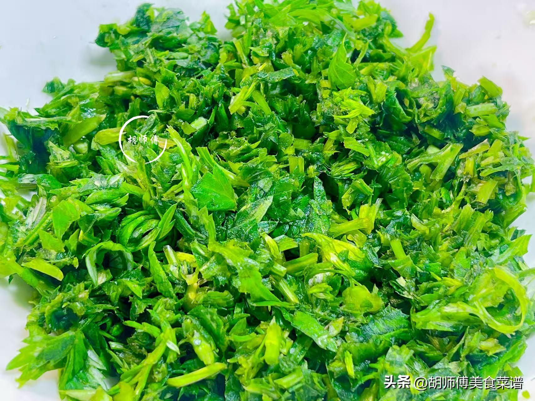 第一步:做艾草肉丸,一定要選擇嫩艾草,老艾草裏面的粗纖維太多了,不好喫。買或者摘回家的艾草,先將它沖洗乾淨,然後把水瀝乾後切成碎末,接着撒上一點點食鹽到艾草中攪拌均勻,最後將艾草醃製10分鐘後,將艾草中的水都擠出來即可備用。