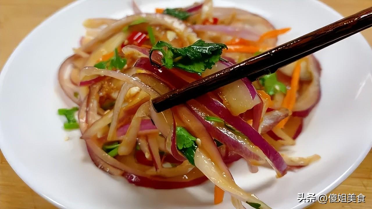 我家現在頓頓都離不開這道涼拌洋蔥,尤其是夏天,天熱沒胃口的時候,夾一筷子,脆爽酸甜,瞬間打開味蕾,比喫大魚大肉還滿足。
