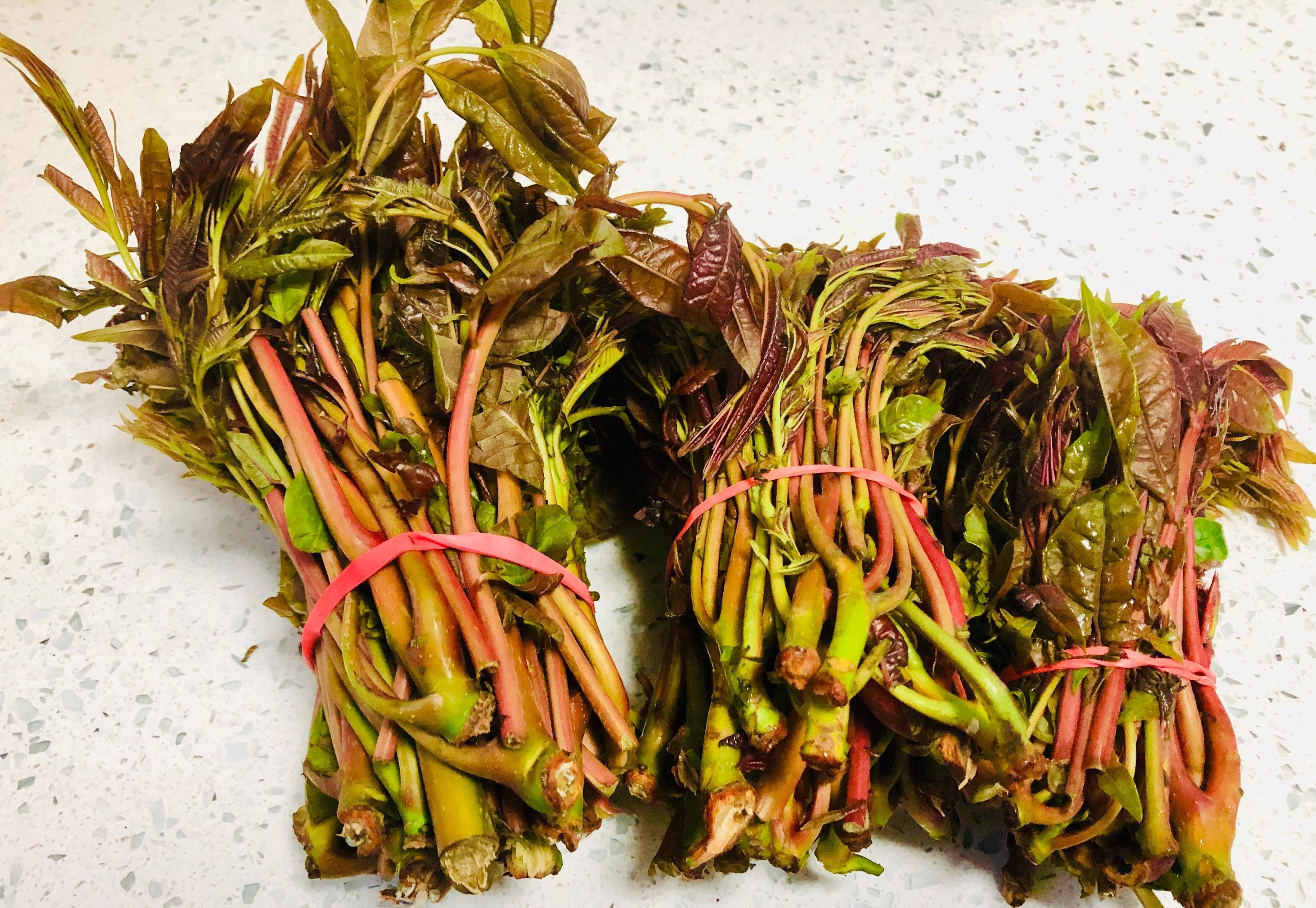 香椿。它的葉子呈紫紅色,散發着濃郁的香氣。香椿最經典的做法就是香椿炒雞蛋,將香椿切碎後與雞蛋一起炒制,雞蛋吸收了香椿的香氣,變得更加美味。