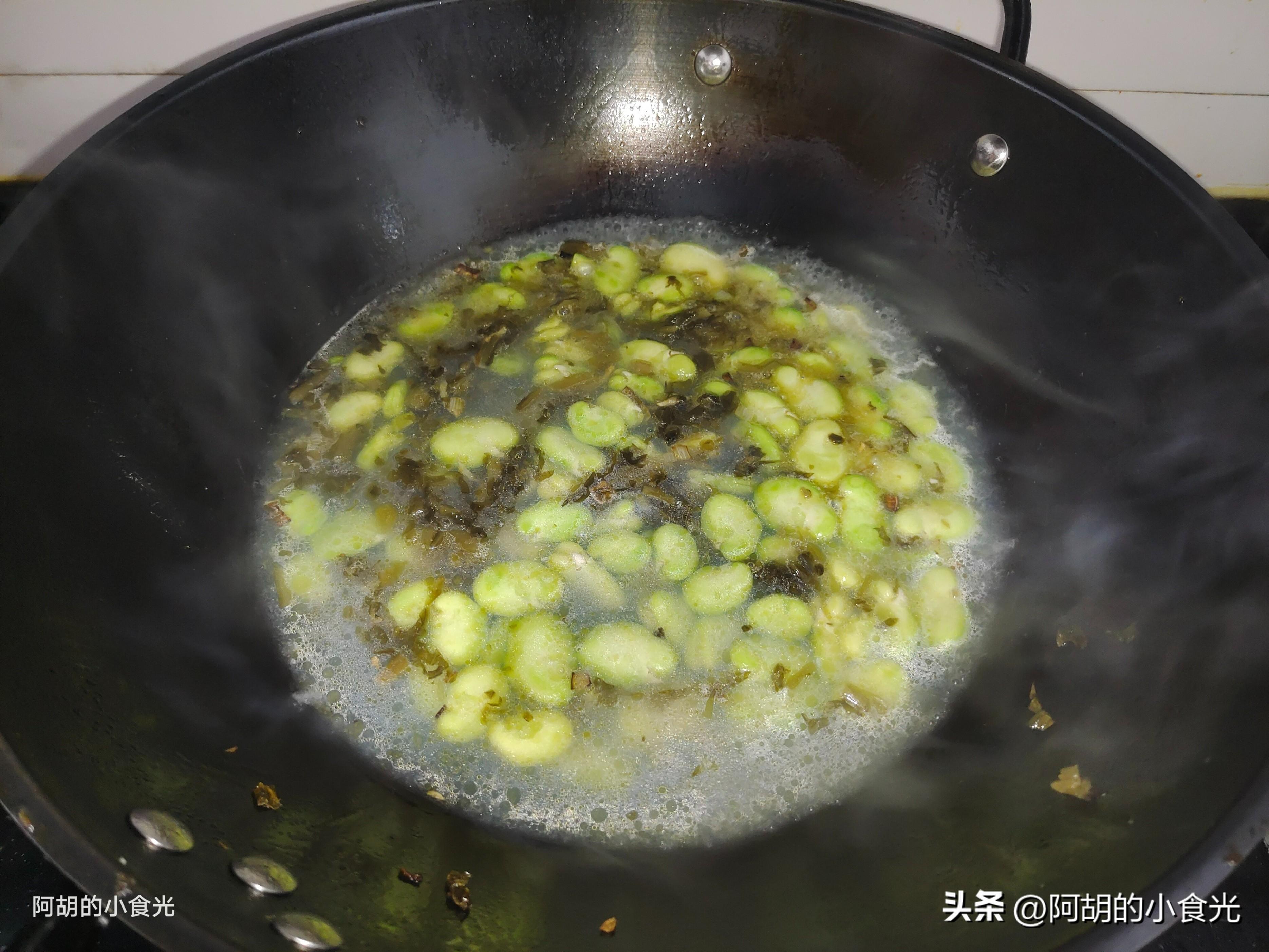 第五步:就這樣保持大火煮個三五分鐘,讓蠶豆仁充分地熟透,最後取出焯水後的花蛤倒入湯汁中,簡單翻拌一下後再煮個一分鐘左右就可以出鍋裝盤了。這是一道極具春天味道的湯菜,蠶豆和花蛤、雪菜的搭配太完美,湯鮮菜嫩一口就助你打開好味蕾,感興趣的一定要試一試這個經典搭配。
