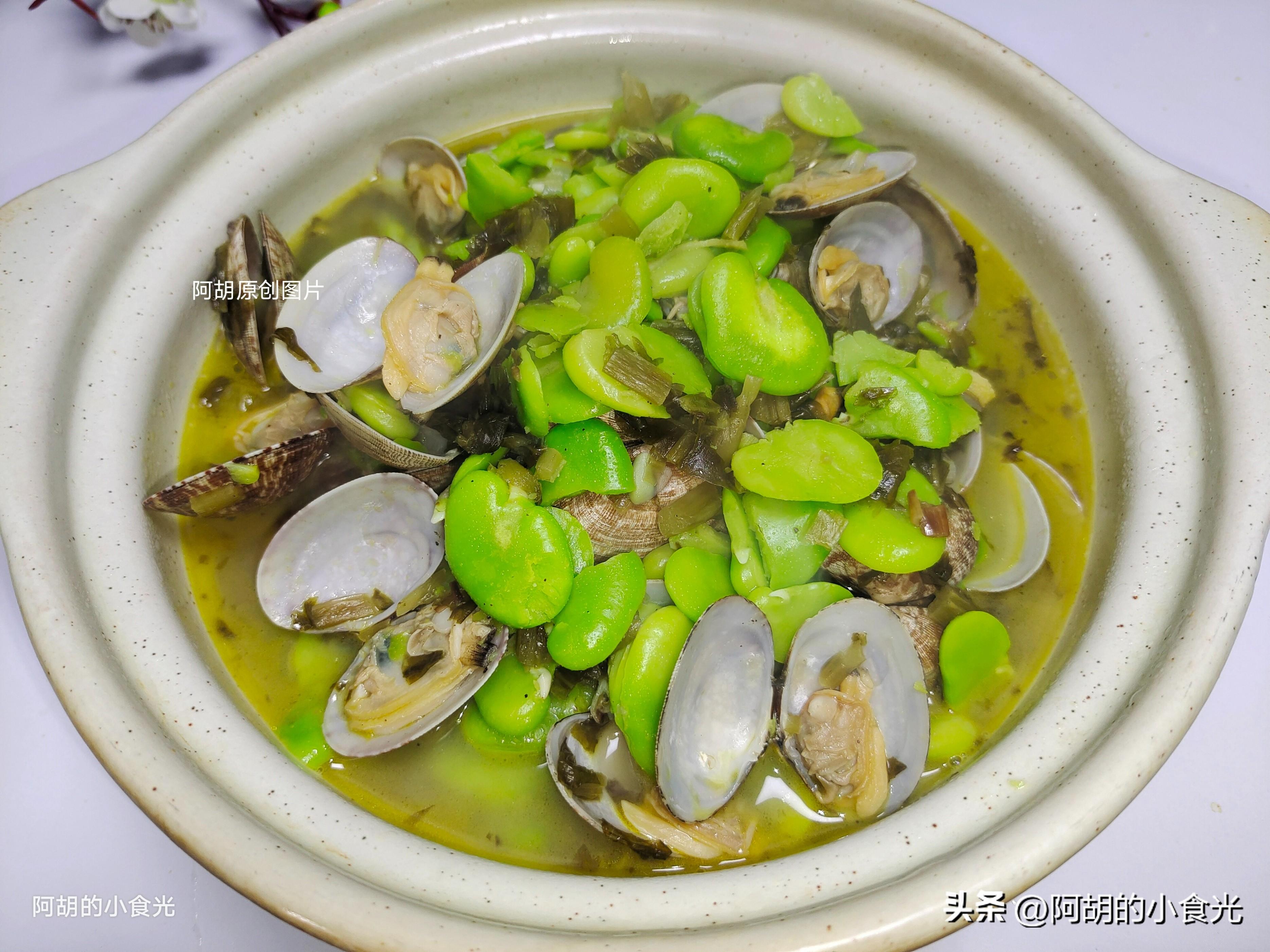 ——雪菜蠶豆燒花蛤——