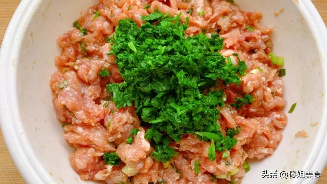 第二步:調豬肉餡,鮮到舔盤!1. 把豬肉餡放進大碗裏,先加薑末、蔥花,再倒2勺生抽、1勺蠔油、少許花椒粉,順着一個方向攪拌,讓肉餡吸飽調料。2. 重點來了!往肉餡裏打水! 半碗清水分3次倒進去,每次都順着同一個方向使勁攪,直到肉餡變得黏糊糊、有彈性爲止。◦ 打水的目的是讓肉餡喫起來更嫩,咬一口能爆出汁兒!3. 最後把切碎的芹菜葉倒進去,再淋上1勺香油,撒上適量鹽,繼續攪拌均勻,芹菜葉豬肉餡就調好了!◦ 聞一聞!是不是已經香到不行了?那股清香味兒,比韭菜還勾人!