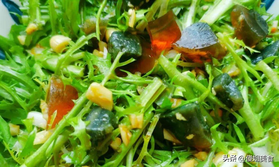 我家開春幾乎每週都要做個兩三回,孩子不愛喫菜的,也會搶着喫這盤苦菊拌皮蛋,真的是全家都愛的味道。春天就該喫點清爽的,別總喫重油重鹽的菜,這道苦菊拌皮蛋,就是最好的選擇。