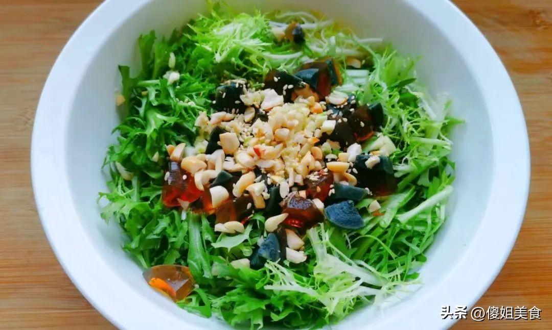 先給沒喫過的朋友嘮嘮這道菜,苦菊就是那種帶着點清鮮、喫起來脆生生的綠葉菜,咬一口咔嚓響,特別提勁;皮蛋是綿密沙糯的口感,裹着料汁香到骨子裏;再配上香酥的花生碎,一口下去,脆的、綿的、香的、鮮的,各種味道在嘴裏炸開,別提多過癮了!春天喫這口,瞬間清爽起來!