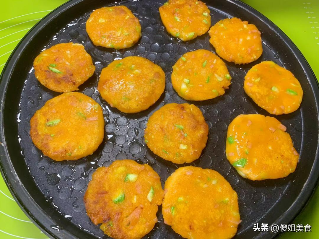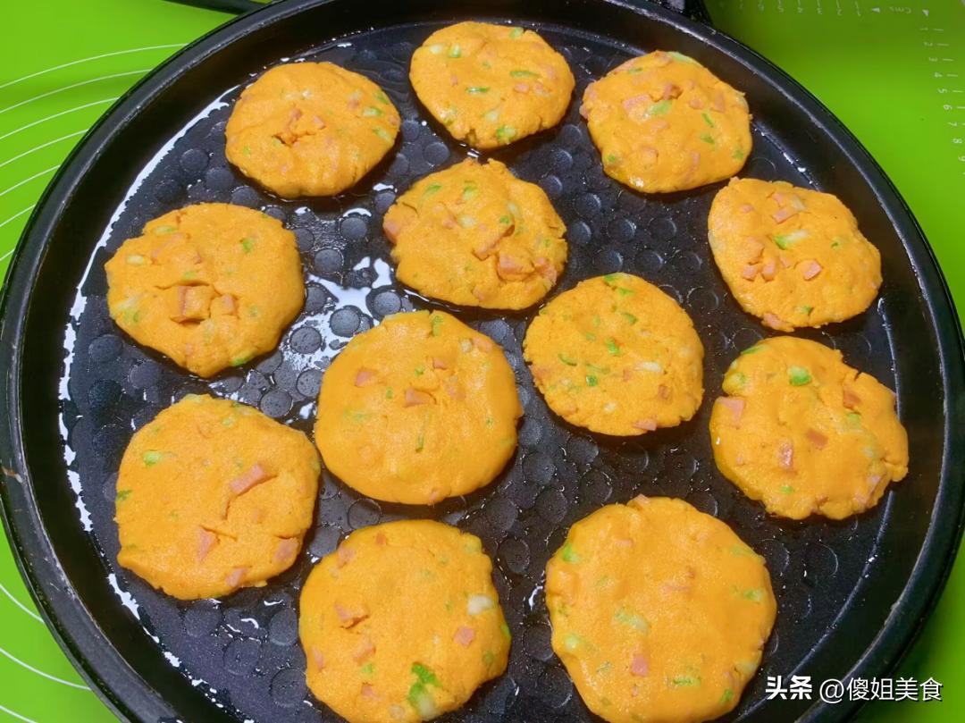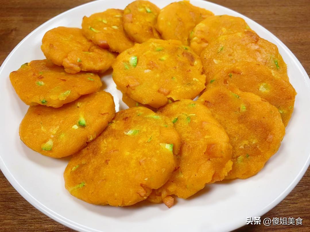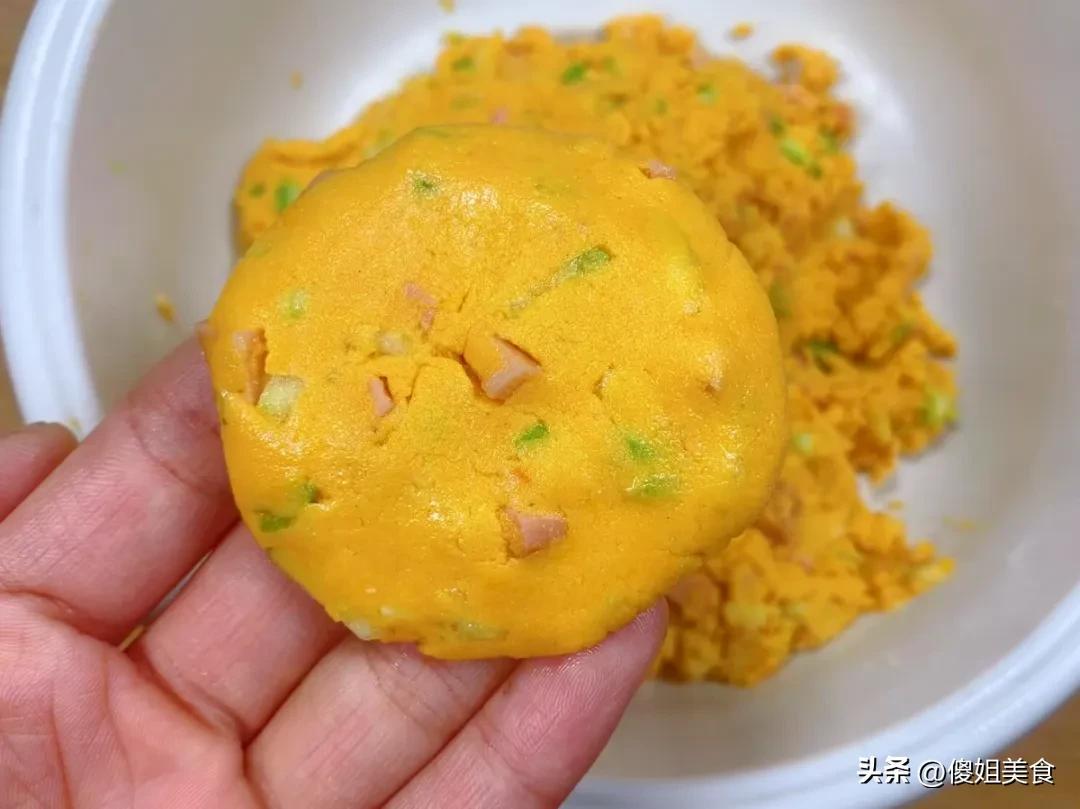5毛錢一斤!這價格也太實在了!現在菜市場裏紅薯山藥都得兩三塊一斤,這自家種的老南瓜,又甜又面,才5毛一斤,簡直是撿漏了!我當場就挑了兩個大的,沉甸甸的,拎回家都夠喫好幾天了。回家就琢磨着怎麼喫,蒸着喫、熬粥喫都太普通了,不如給孩子做個小餅當早餐?想着想着就有了這個南瓜糯米餅的方子,還加了孩子愛喫的火腿丁和西葫蘆,鹹香適口,外酥裏軟,一口下去全是南瓜的香甜,還有火腿的鮮味兒。我家兒子放學回家,一口氣連喫了5個,直喊着“媽媽明天再做!”