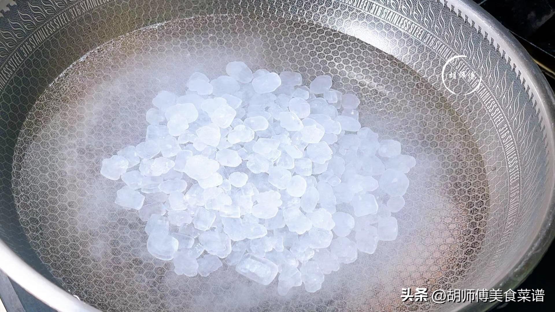 第四步:鍋中放入適量自來水,等水煮沸後,將冰糖放入鍋中煮融化後關火,等冰糖水完全冷卻後,就可以把米醋放入冰糖水中攪拌均勻。