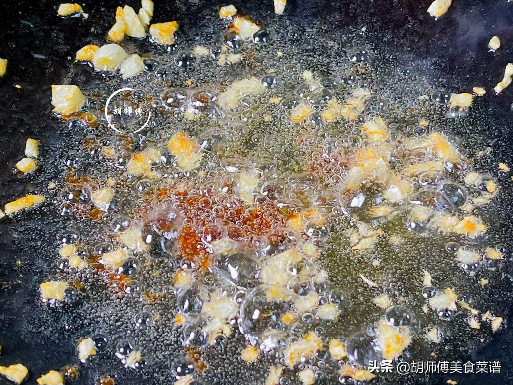 第三步:將鍋燒熱後,放入一勺油到鍋中,等油溫燒到5成熱後,把蒜末、蠔油都放入鍋中,將它們炒七八下,徹底激發出它們的香味。