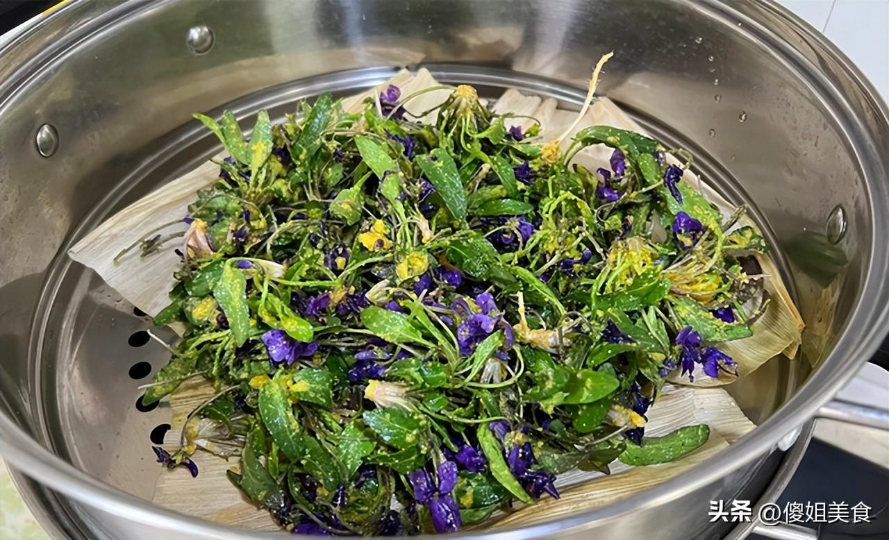 紫花地丁的喫法很多,除了蒸,還能包餃子、做湯,下次可以試試用它包野菜餃子,鮮得很。