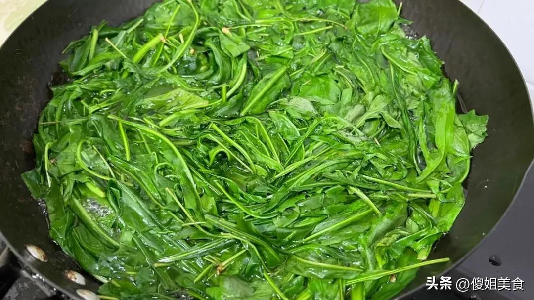 洗乾淨的苦菜,最關鍵的一步就是焯水,這也是苦菜包子不苦的祕訣!
