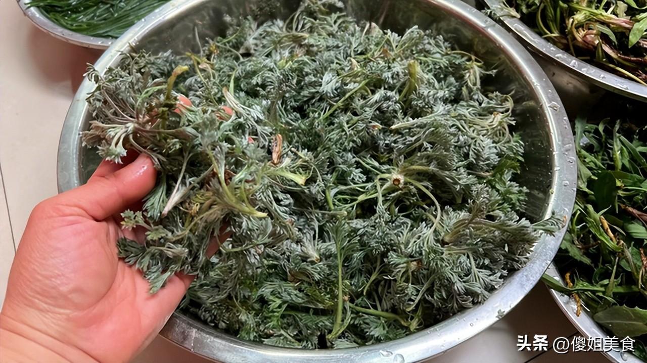 白蒿也是春天的“常客”,有的地方叫茵陳蒿,它長得有點像小艾草,葉子細細的、毛茸茸的,摸起來軟乎乎的,一掐就斷,特別嫩。每年三月,山坡上的白蒿長得正旺,老媽每次去採,都能拎滿滿一籃子。