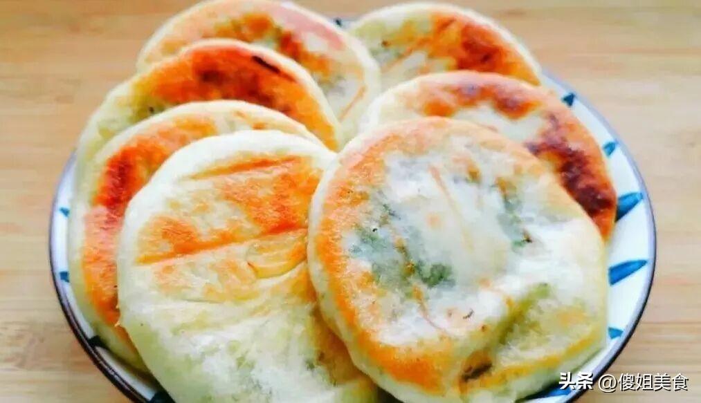 等餡餅兩面都煎得金黃焦脆,用手按一下餅皮,能快速回彈,而且餡餅鼓起來,就說明熟了。