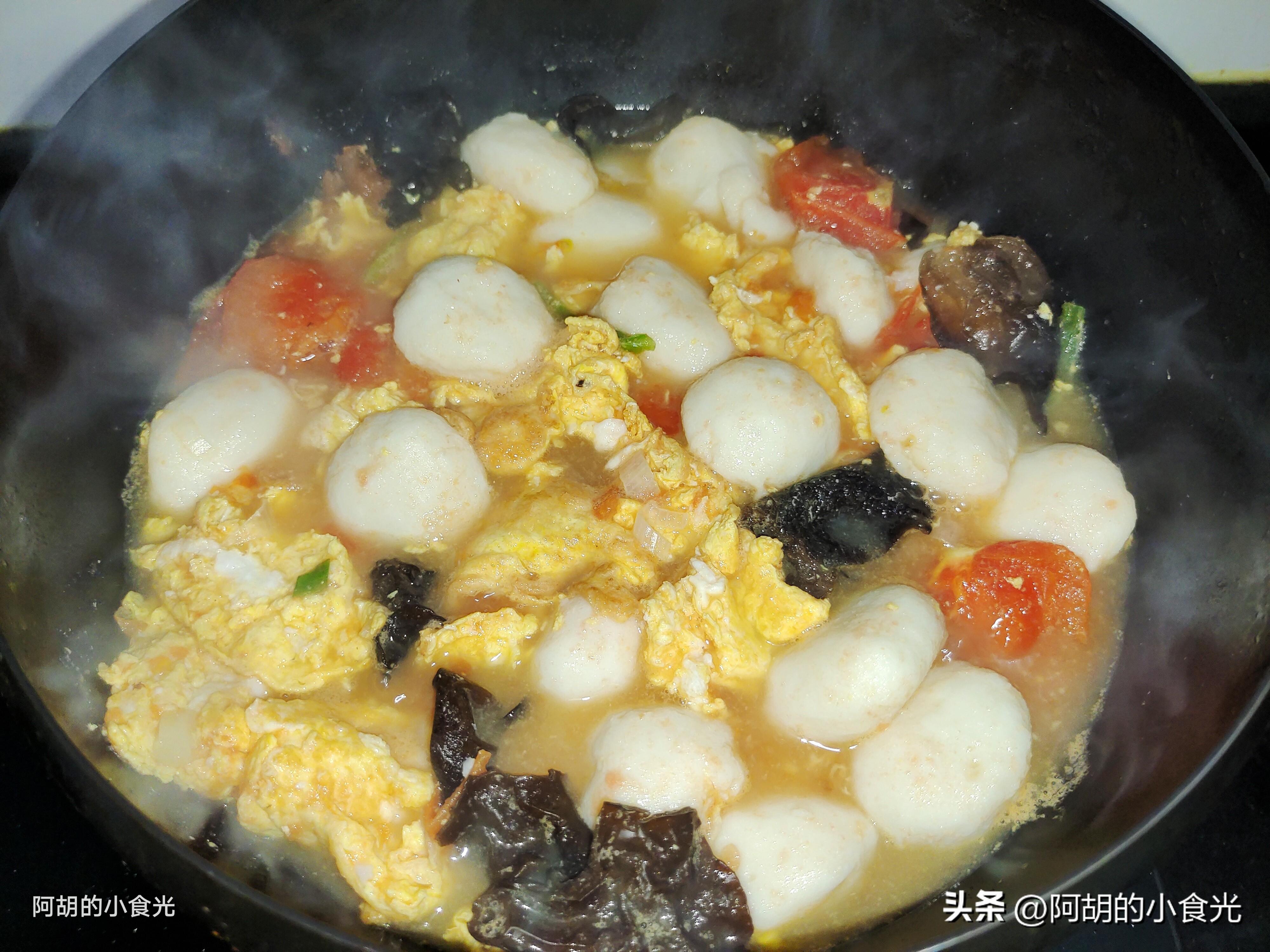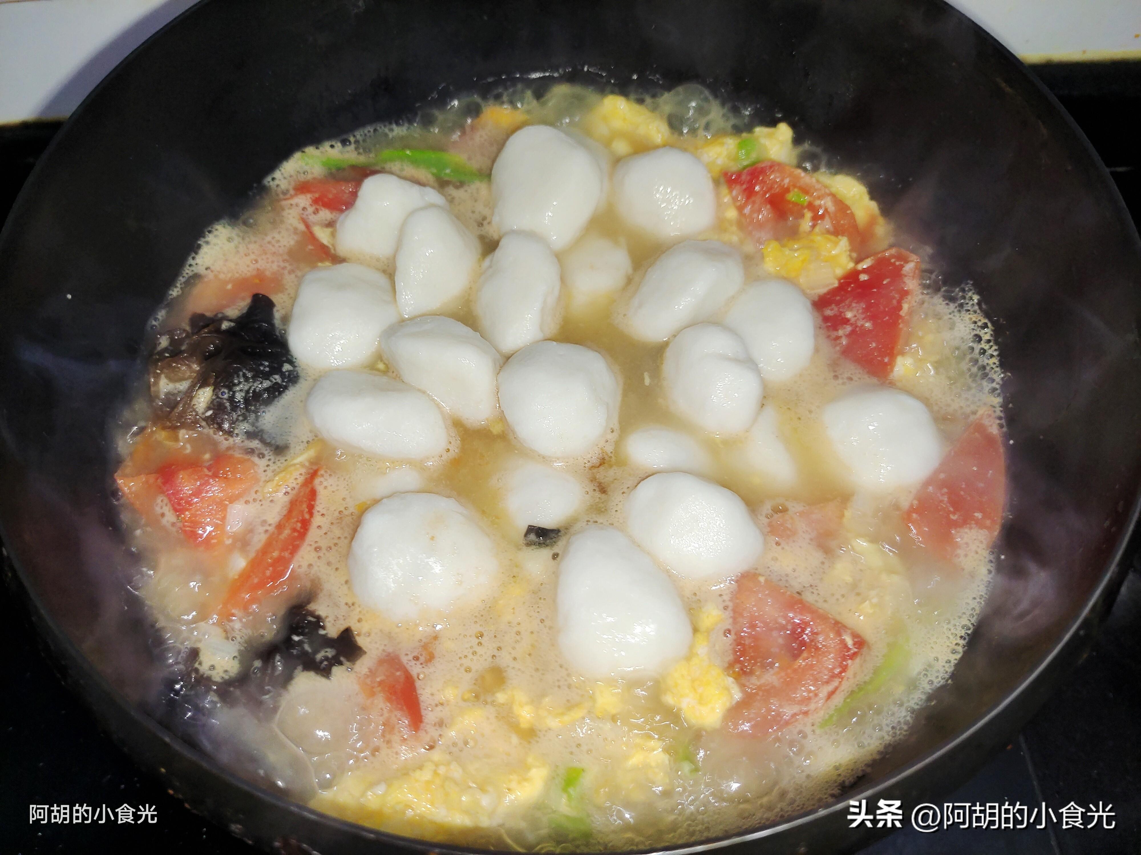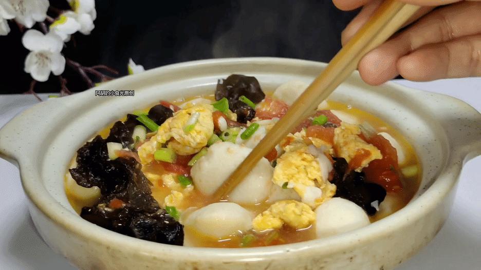 雞蛋和西紅柿炒好後一定要衝入開水才適合,而後保持電大火煮纔可以讓湯汁泛白。另外,我今天用的魚丸中沒有加入豬肥膘肉,只有魚肉和澱粉,所以口感那是比較軟嫩的,出鍋後用筷子輕輕地就可以夾開,你也可以用那種冷凍魚丸來製作。